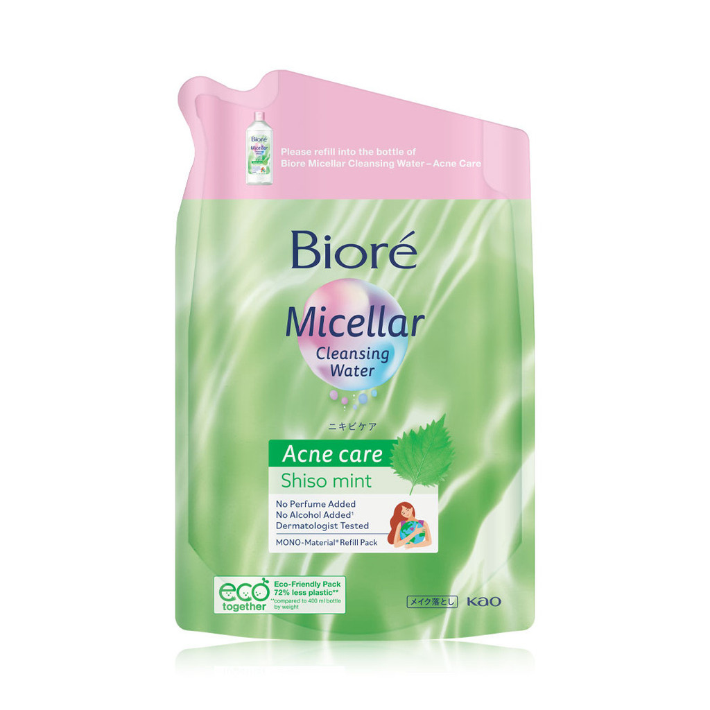 Biore Micellar Cleansing Water Acne Care Shiso Mint Refill 330ml คลีนซิ่งน้ำเกลือ แบบรีฟิล สำหรับผิวบอบบางเป็นสิวง่า...