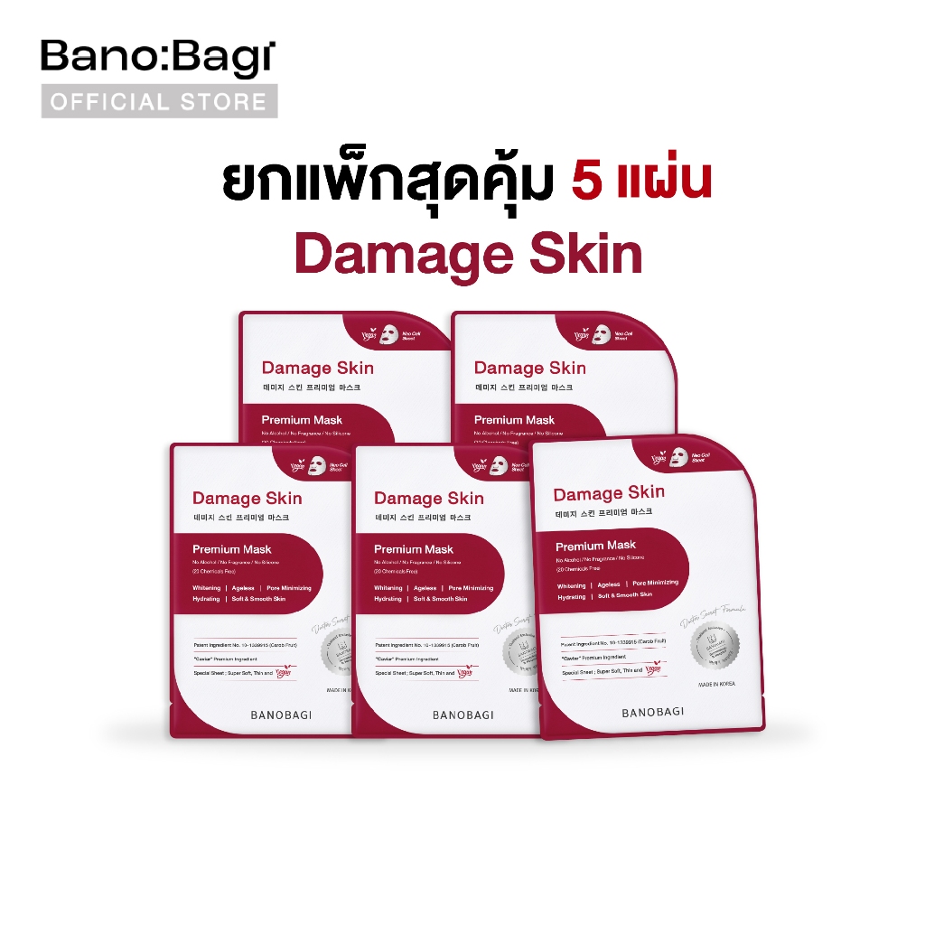 (ยกแพ็กสุดคุ้ม 5 ซอง) BANOBAGI Damage Skin Premium Mask บาโนบากิดาเมจสกินพรีเมี่ยม