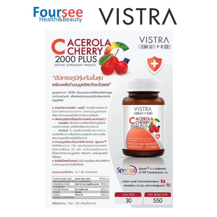 Vistra acerola cherry 1000 mg (20/45 เม็ด) / IMU-PRO C Acerola cherry 2000 plus 30 เม็ด วิสทร้า อะเซโรลา