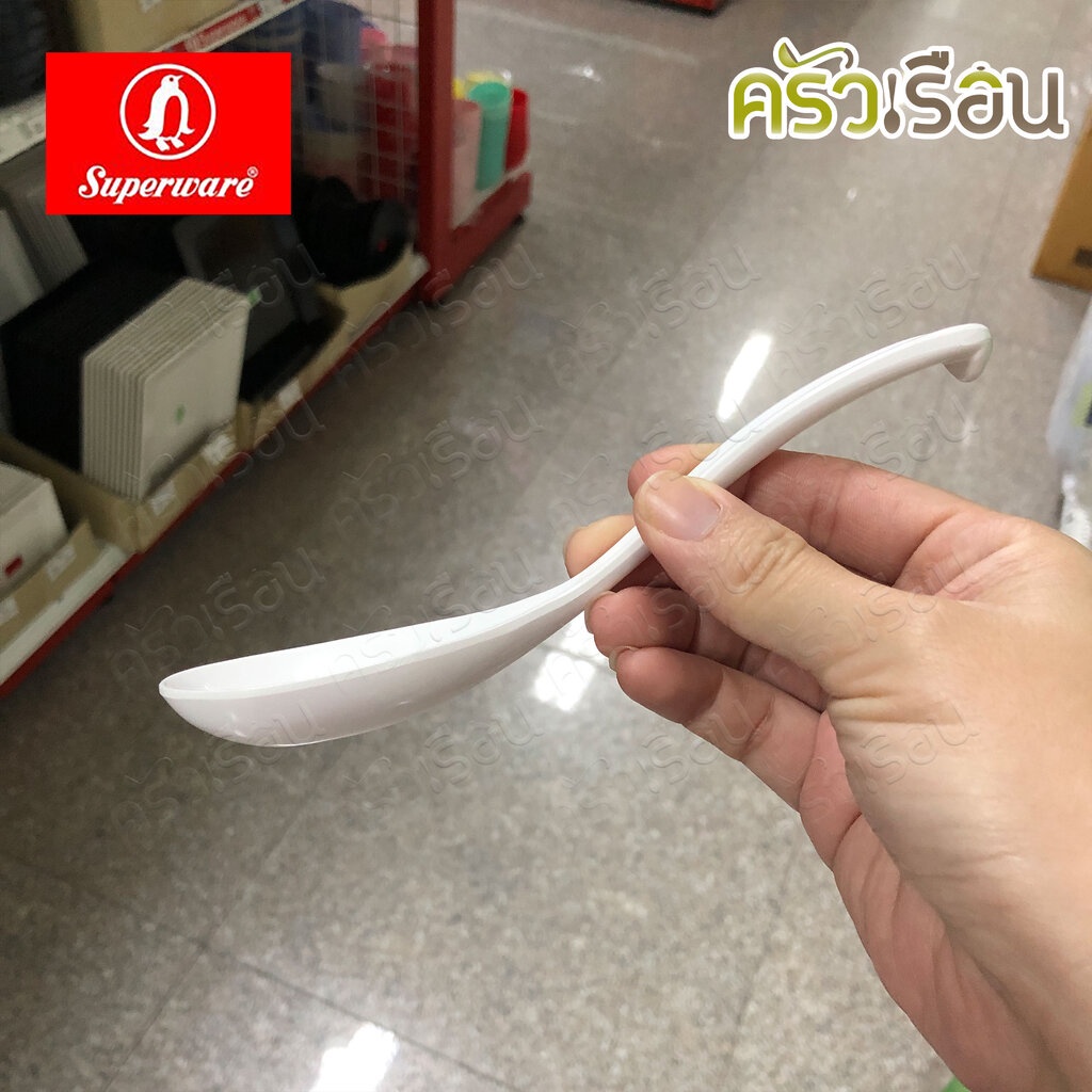 Superware ช้อน ปลายงอ เมลามีน 17 x 4 ซม. M590 ราคาต่ออัน สีดำ หรือ สีขาว ช้อนปลายงอ ช้อน ช้อนซุป ช้อนราเมน ช้อนเมลามีน