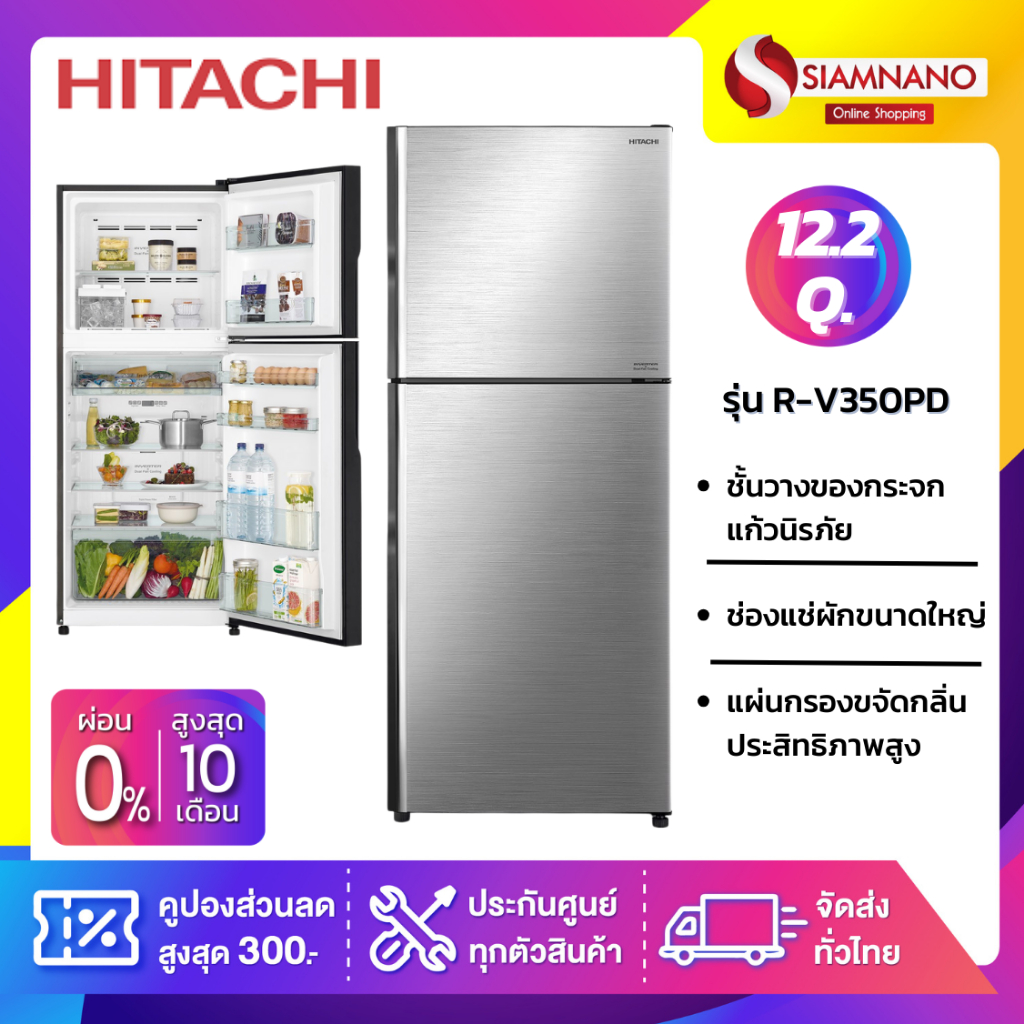 ตู้เย็น 2 ประตู HITACHI รุ่น R-V350PD 12.2Q สีเงิน (รับประกันนาน 10 ปี)