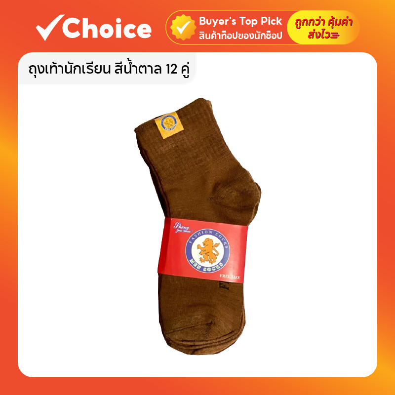ถุงเท้านักเรียน สีน้ำตาล ข้อยาว ฟรีไซซ์ ใส่สบาย ไม่รัดเท้า