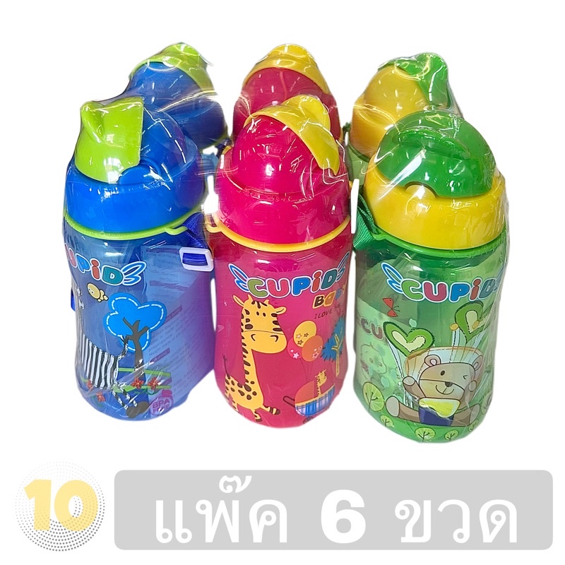 ลด10% โค้ด DDXDECW4 Cupid ขวดน้ำหลอดดูด สำหรับเด็ก (คละสีคละลาย) ขนาด 12 ออนซ์ **แพ๊ค 6 ขวด**