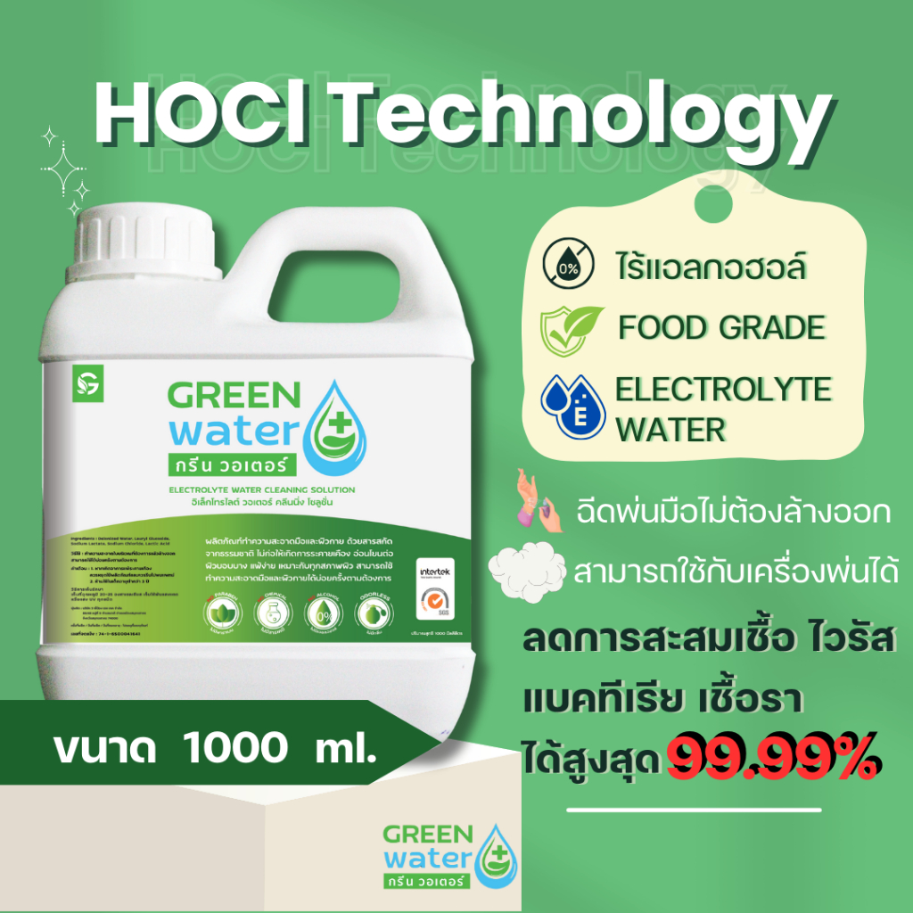 [ออก E-tax ได้ ] Green Water Electrolyte Water Cleaning Solution 1000 ml ผลิตภัณฑ์ทำความสะอาด ลดการสะสมเชื้อโรค