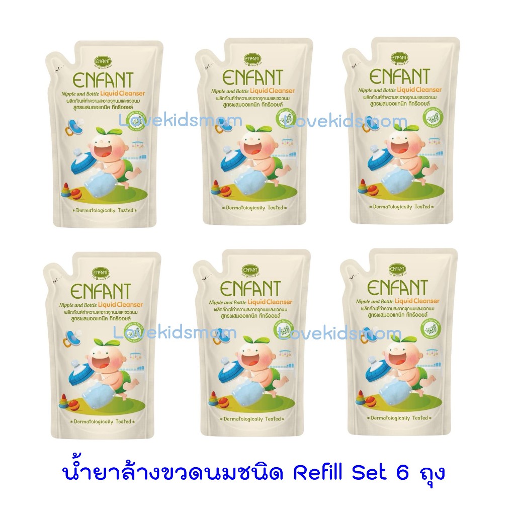 Enfant (อองฟองต์) ผลิตภัณฑ์ทำความสะอาดจุกนมและขวดนม สูตร Double Cleanser ขนาด 600ml. เซ็ท 6 ถุง