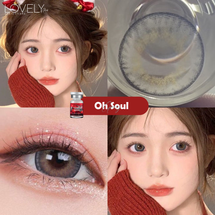 💋 สุดปัง มีค่าสายตา 💋 Lovelylens oh soul Gray Brown บิ๊กอาย สุดปัง คอนแทคเลนส์ รายเดือน มีอย แถมตลับฟรี เลนส์นิ่ม สวยป