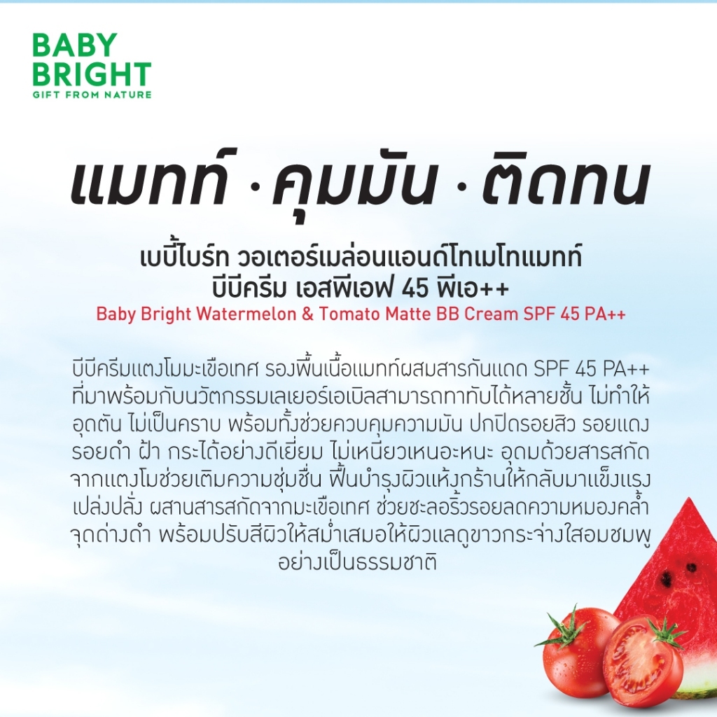 Baby Bright Watermelon & Tomato BB เบบี้ไบร์ท บีบีแตงโม ครีมแตงโมมะเขือเทศ