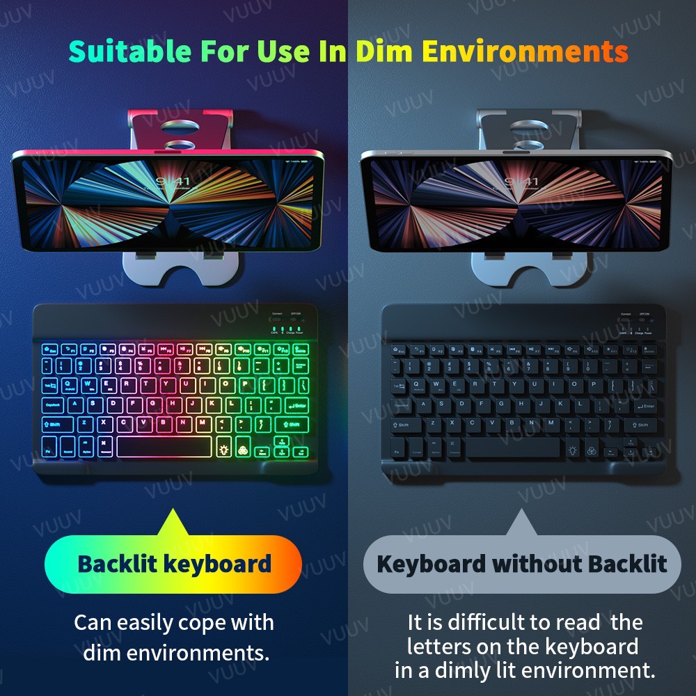 GOOJODOQ คีย์บอร์ดและเมาส์ไร้สาย Bluetooth ขนาด 10 นิ้ว พร้อมไฟแบ็คไลท์ LED สำหรับ iP
