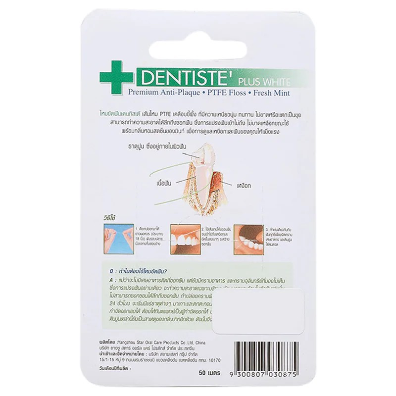 Dentiste Dental Floss 50m.+10m เดนทิสเต้ ไหมขัดฟันพลัสไวท์ 50เมตร+10เมตร