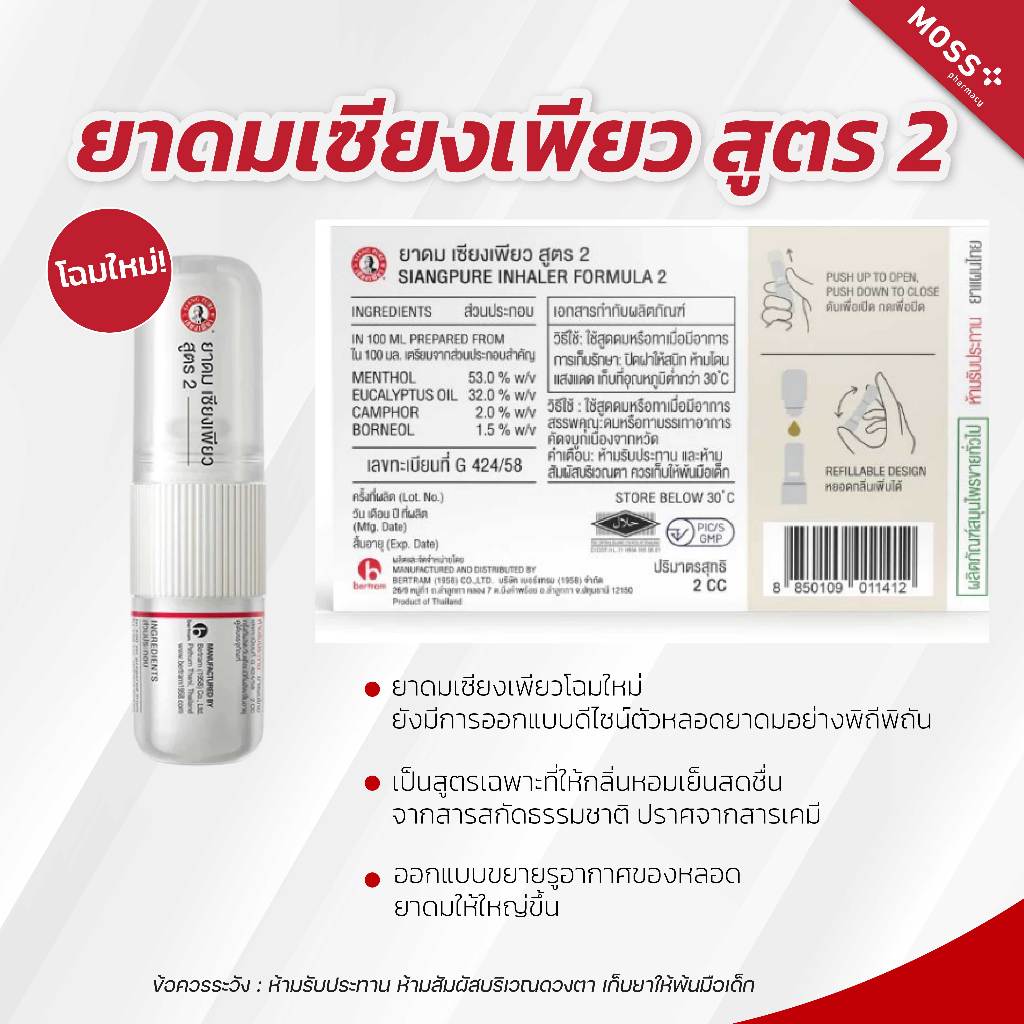 ยาดมเซียงเพียว สูตร 2 แบบหลอด Siang Pure Inhaler แพ็คเกจใหม่ หอมชื่นใจ ปริมาณ 2 CC