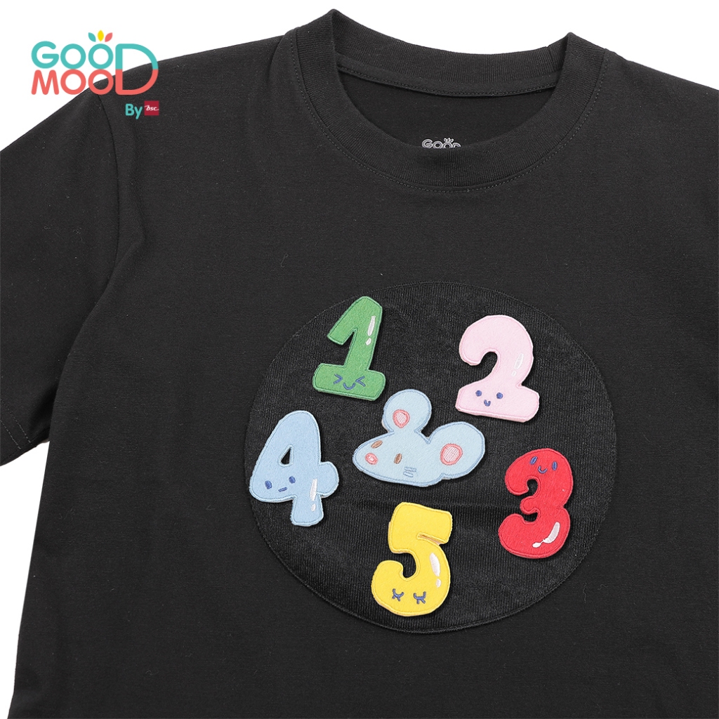 Good Mood by bsc เสื้อยืดคอกลม แขนสั้น สีดำ + PATCHES ลายตัวเลข 6 ชิ้น สำหรับเด็กอายุ 6-7 ปี ผ้าคอตตอน