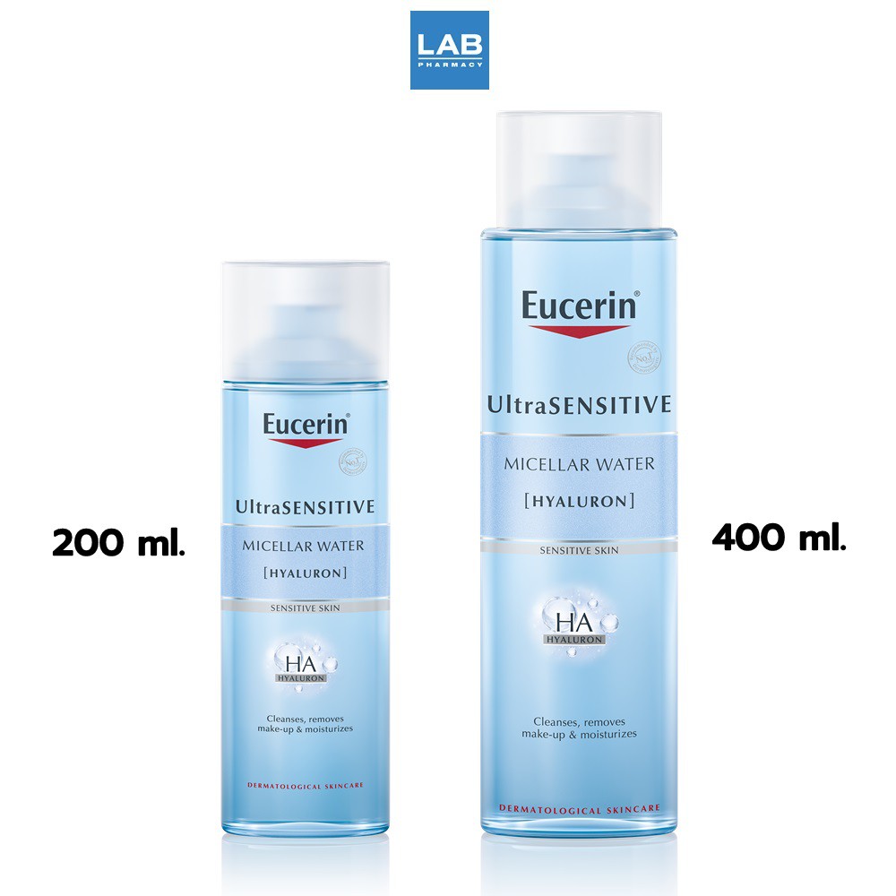 Eucerin UltraSENSITIVE (Hyaluron) Micellar Water 200 - 400 ml. - ไมเซลล่าวอเตอร์ เช็ดล้างเครื่องสำอาง ผิวแพ้ง่าย