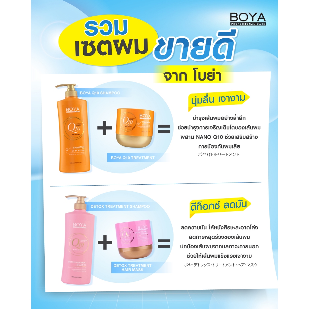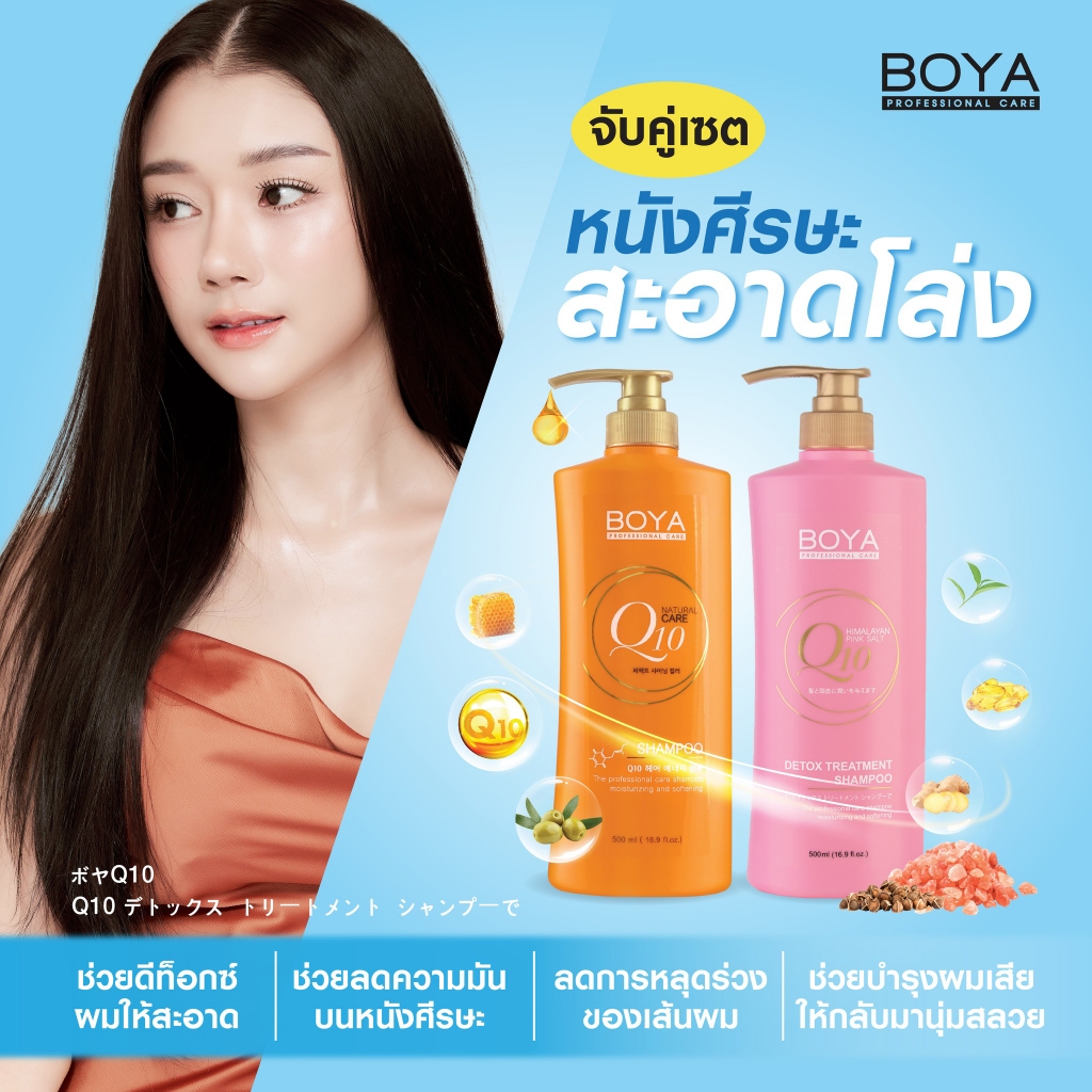 แชมพู & ทรีทเม้นท์ โบย่า คิวเทน ดีท็อกซ์ผม Boya Q10 Shampoo & Treatment Detox Hair Mask 115 / 500 g.