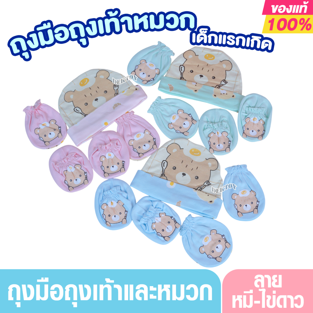 ผ้าหนา Mami baby มามิเบบี้ หมวก ถุงมือ ถุงเท้า ชุดละ99บาทต่อ1ชุด