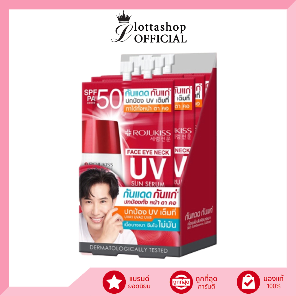 (กล่องX6ซอง) Rojukiss โรจูคิส เฟส อาย เนค ยูวี ซัน เซรั่ม SPF50+ PA++++ 7 กรัม #กันแดดกันแก่