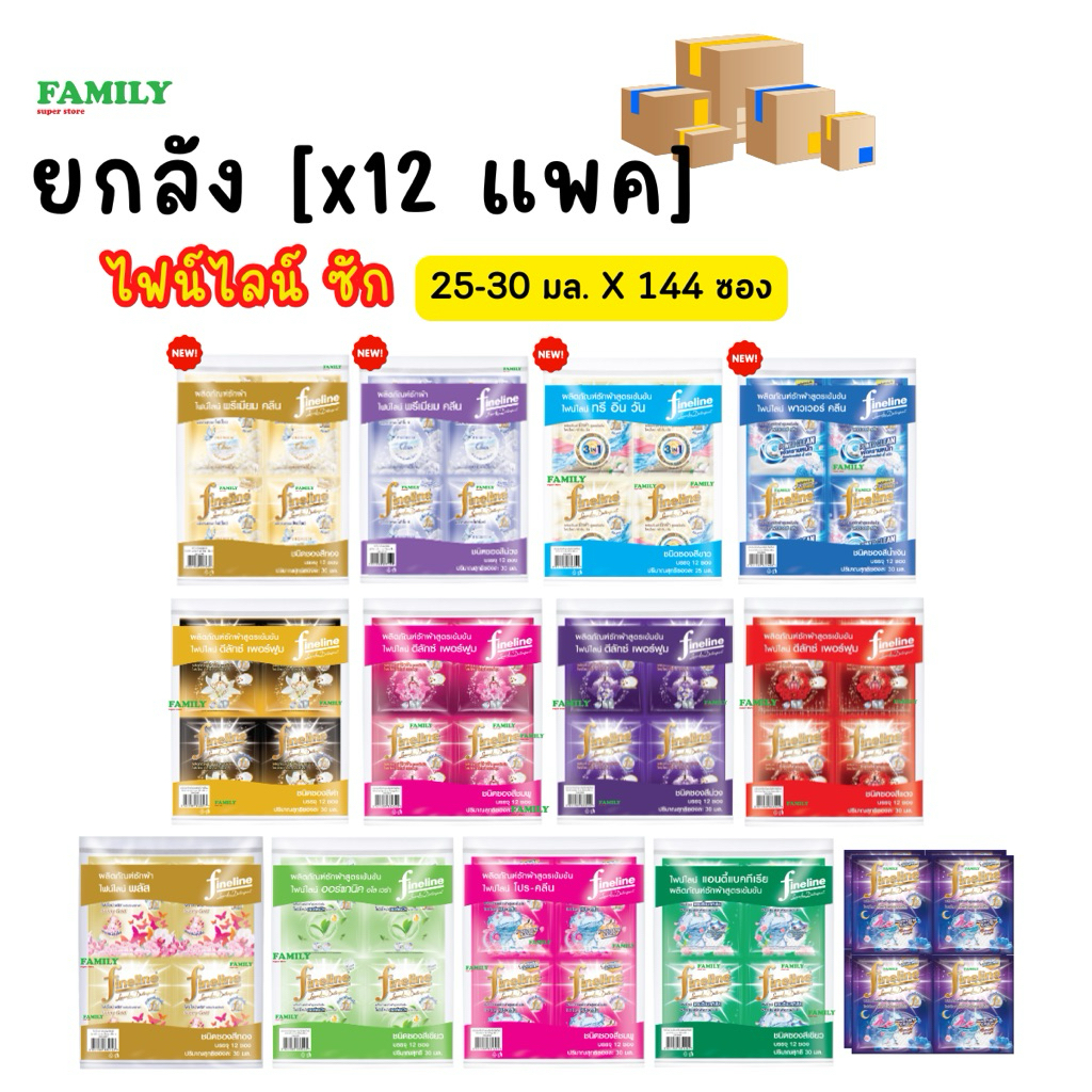 (ยกลัง) Fineline ไฟน์ไลน์ น้ำยาซักผ้าสูตรเข้มข้น แบบซอง (25/30มล x 144ซอง)