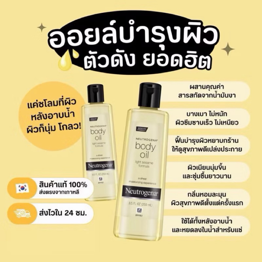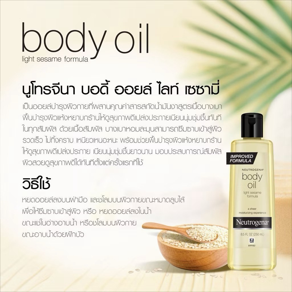 นูโทรจีนา ออยบำรุงผิว บอดี้ ออยล์ ไลท์ เซซามี่ Neutrogena Body Oil Light Sesame 250ml