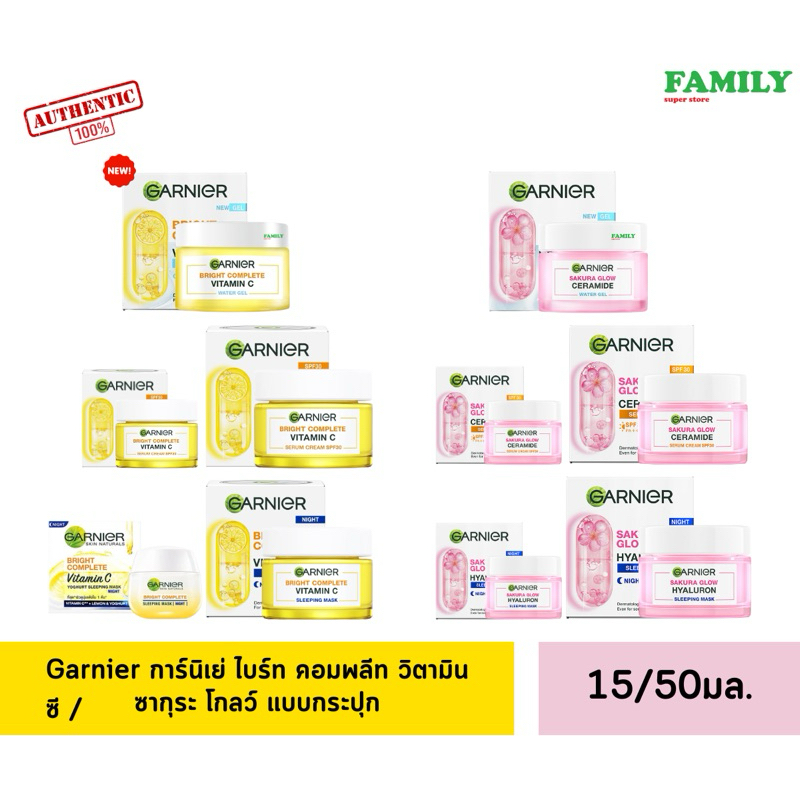 Garnier การ์นิเย่ เซรั่มครีม/เจลครีมบำรุงผิวหน้า ไบรท์คอมพลีส/ซากุระโกลว์ แบบกระปุก ขนาด 50 มล [002]