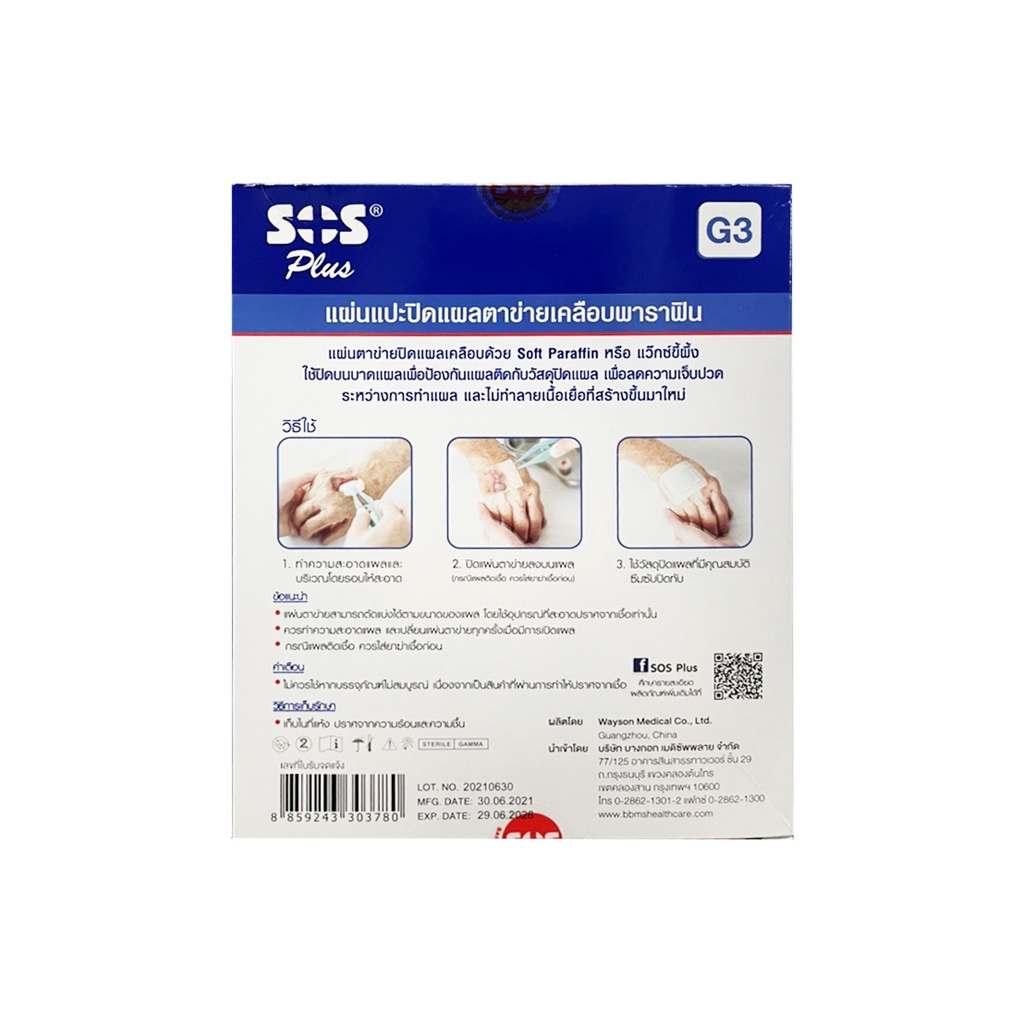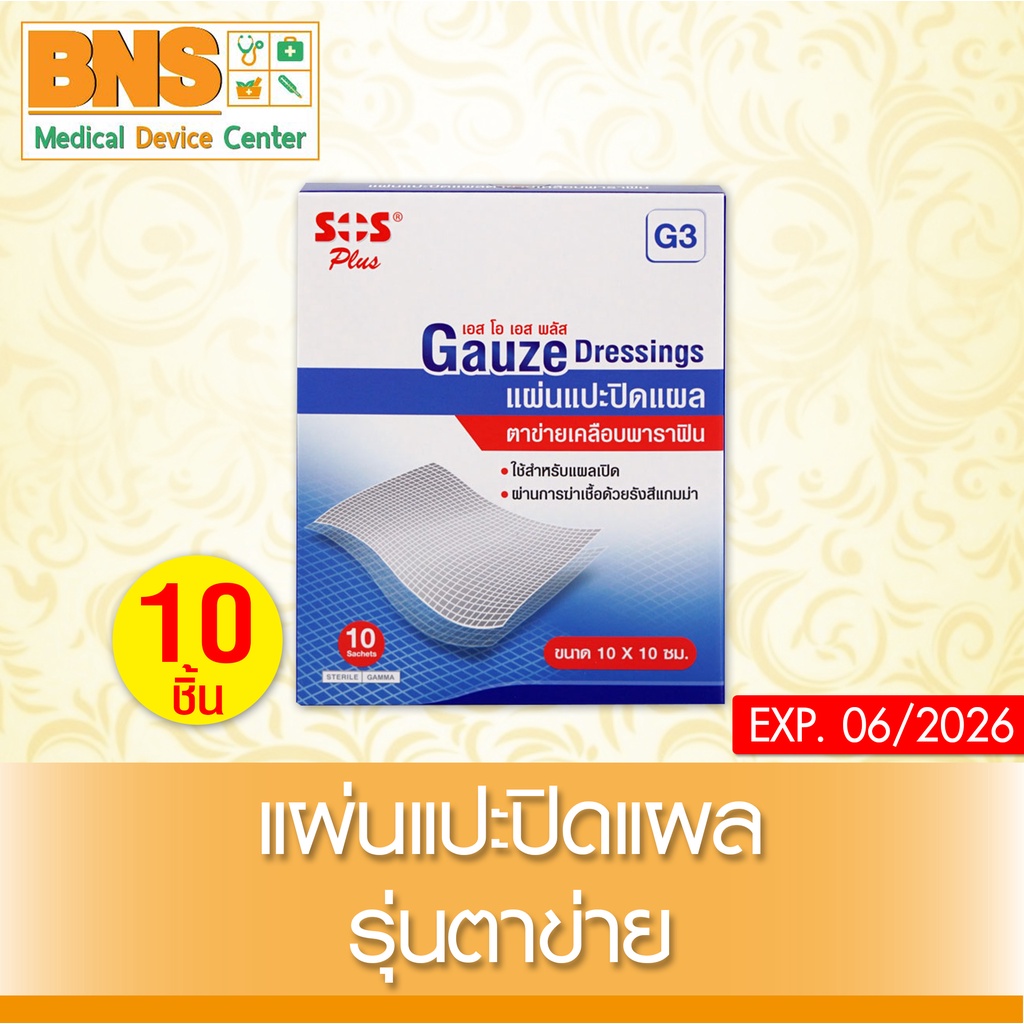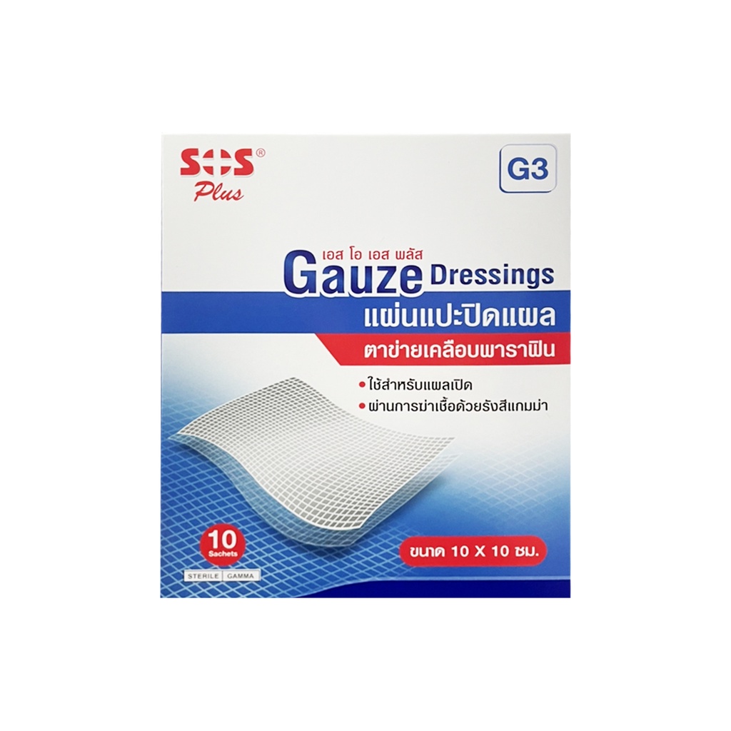ส่งเร็ว !! ( 1 กล่อง ) Sos plus gauze G3 10X10 CM แผ่นเเปะ ปิดเเผล (ถูกที่สุด)