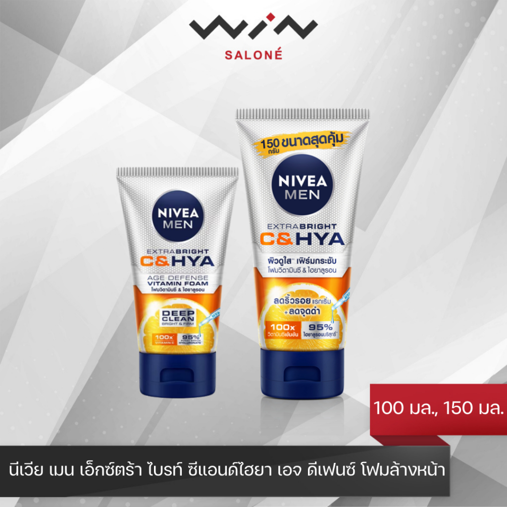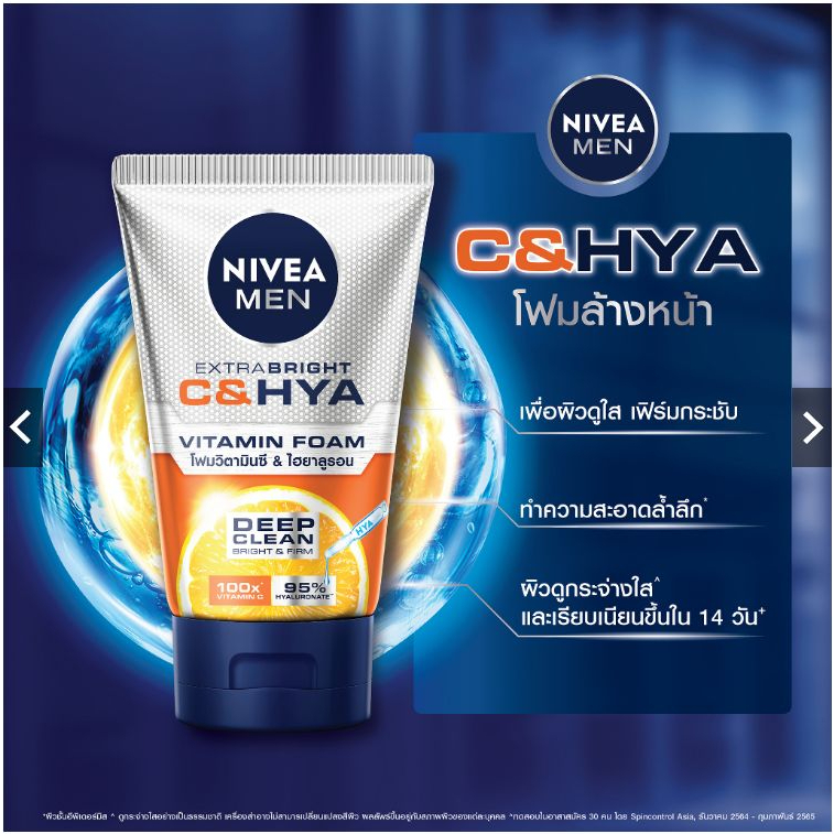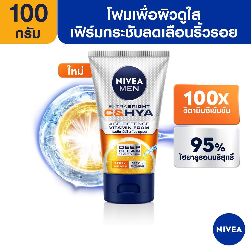 Nivea Men นีเวีย เมน เอ็กซ์ตร้า ไบรท์ ซีแอนด์ไฮยา เอจ ดีเฟนซ์ วิตามิน วอช (100 กรัม,150 กรัม) โฟมล้างหน้า ผิวธรรมดา-มัน