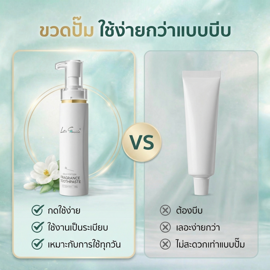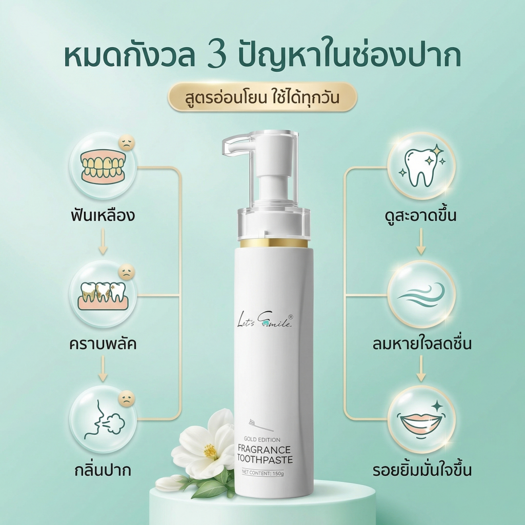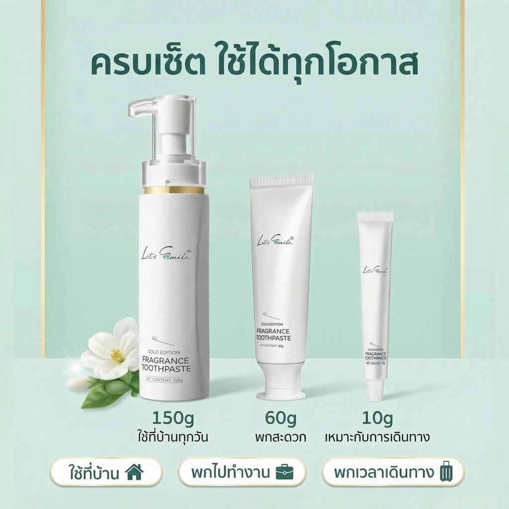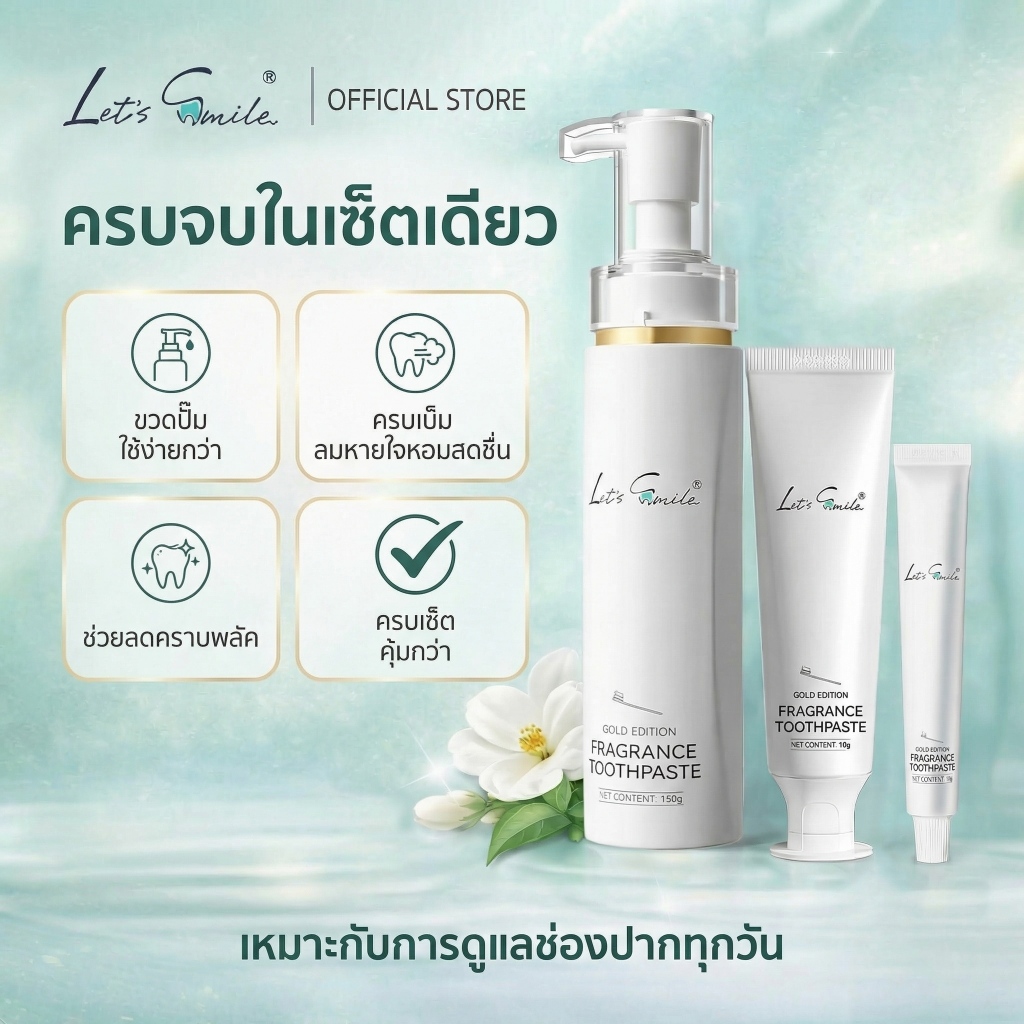 Let’s Smile ยาสีฟันสมุนไพร ฟอกฟันขาว ลดฟันเหลือง ลดคราบพลัค ลดกลิ่นปาก กลิ่นมะลิ สูตรอ่อนโยน เซ็ตคุ้ม 150g+60g+10g