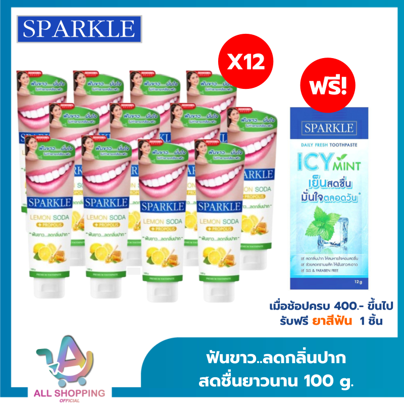 [แพ็ค 12] SPARKLE ยาสีฟัน สปาร์คเคิล 100 กรัม สูตร LEMON SODA TOOTHPASTE