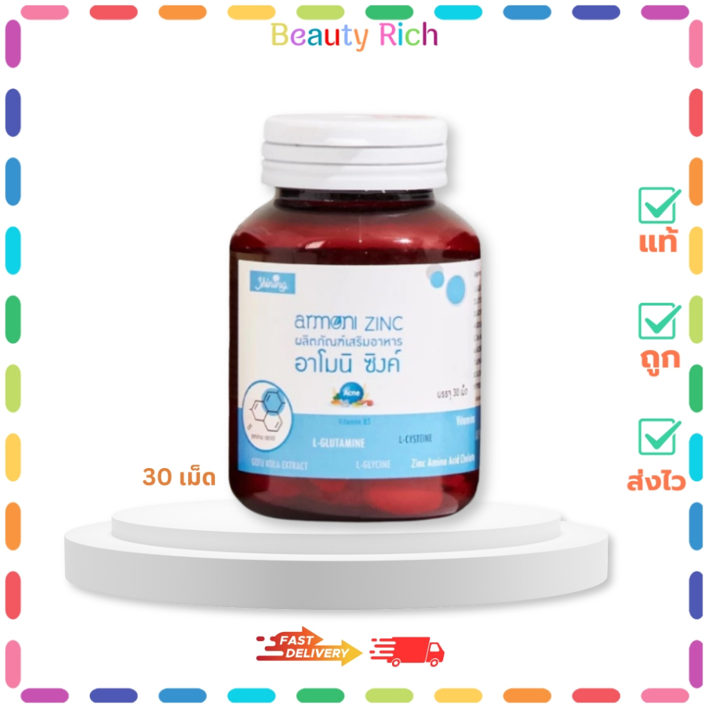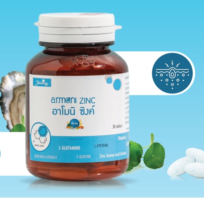 (1 กระปุก) Shining (สีฟ้า) อาโมนิซิงค์ ผลิตภัณฑ์เสริมอาหาร (ปริมาณ 30 เม็ด)