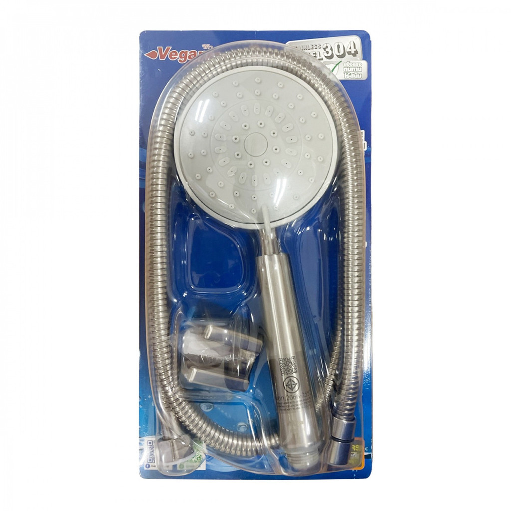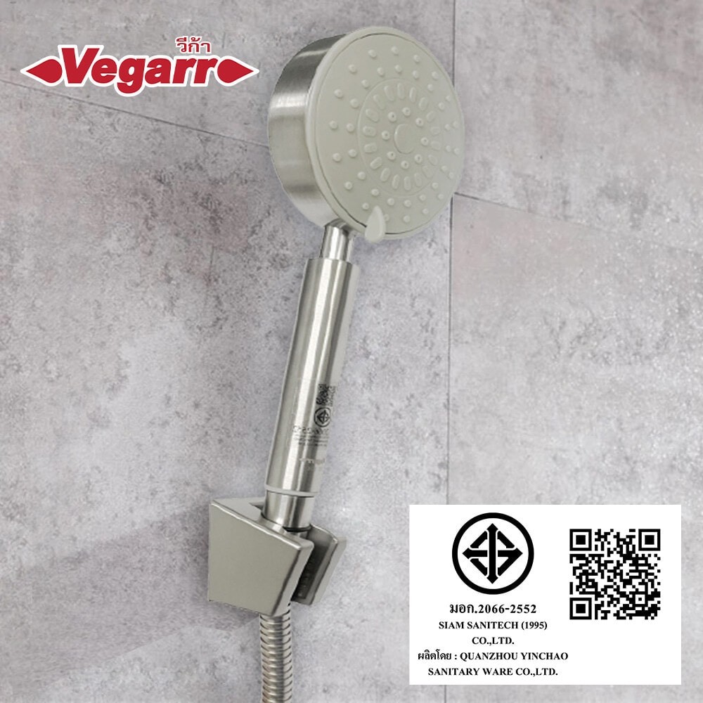 GlobalHouse VEGARR ฝักบัวสแตนเลสเกรด 304 ครบชุด ขาแขวนสีแสตนเลส 2 ระดับ สายสแตนเลสเกรด 304 ยาว 120 ซม. A-890