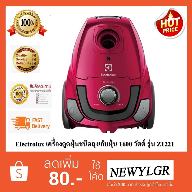 ( มีสต๊อกพร้อมส่ง ) Electrolux เครื่องดูดฝุ่นชนิดถุงเก็บฝุ่น 1600 วัตต์ รุ่น Z1221 สีชมพู