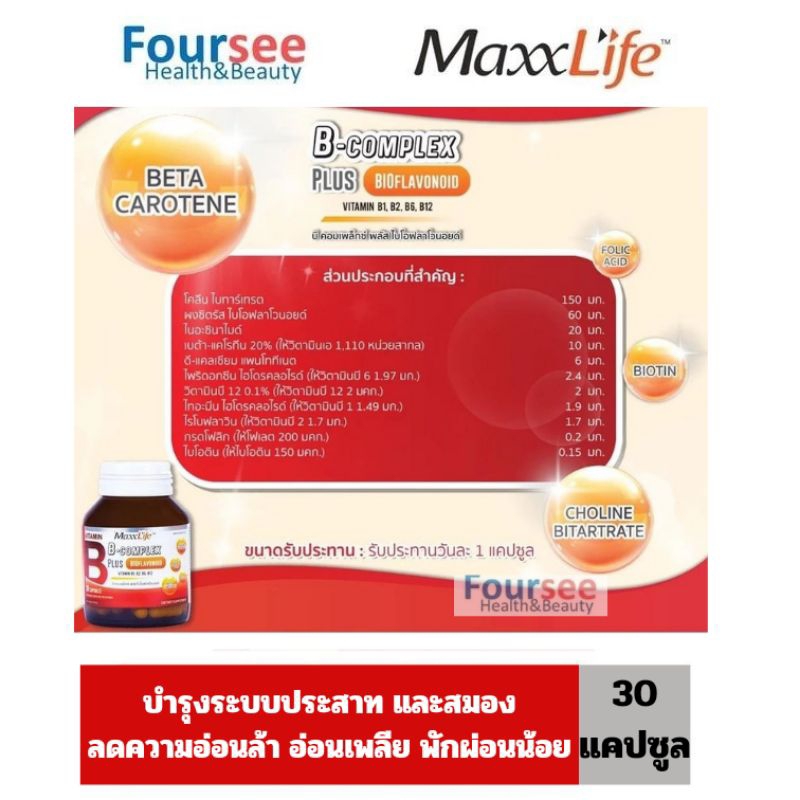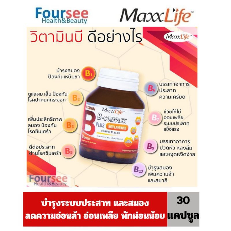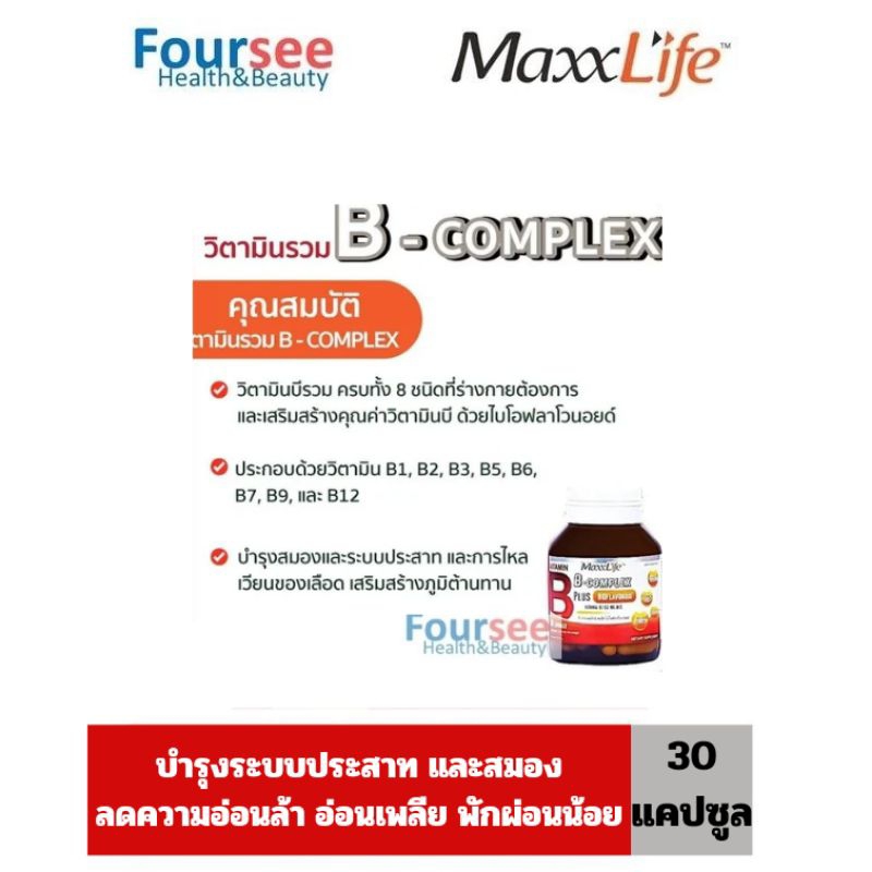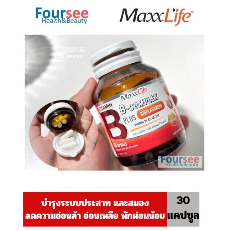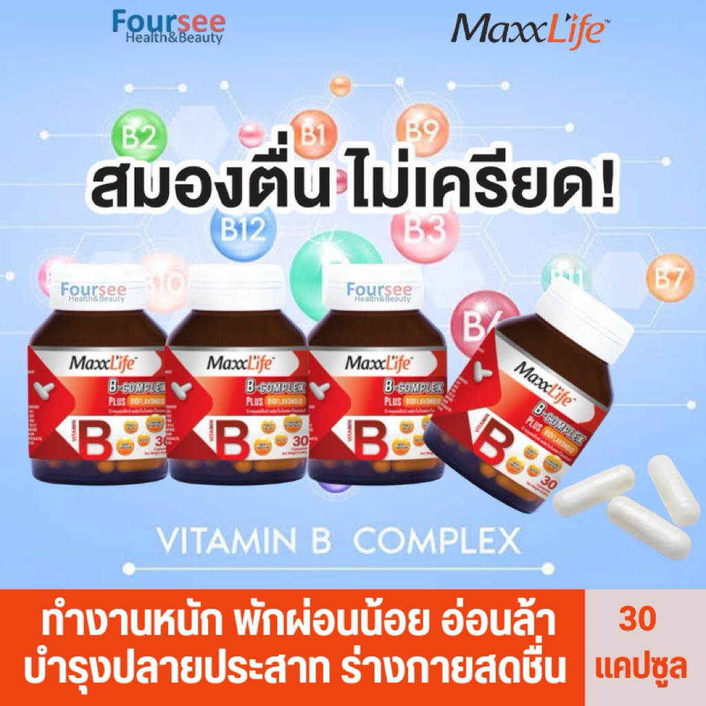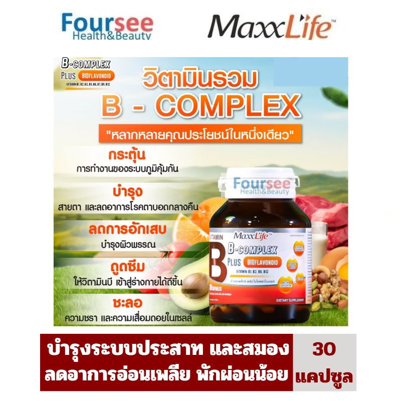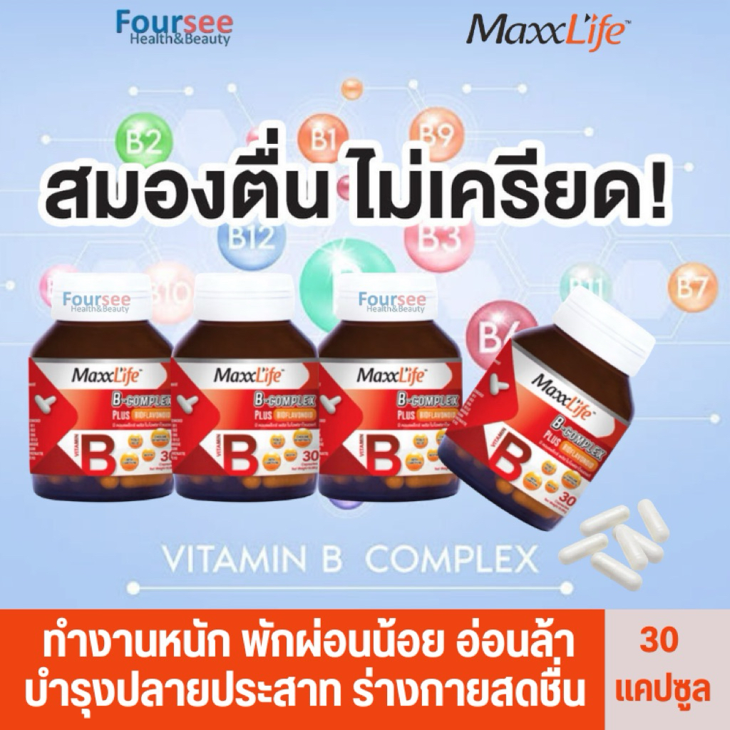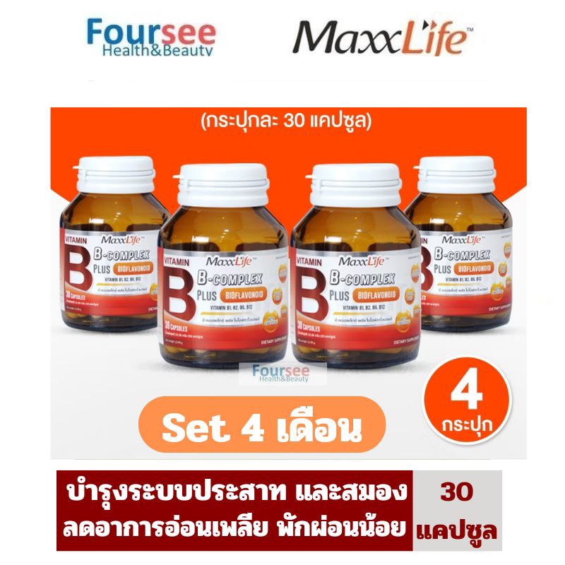 ล้อตใหม่((ส่งด่วน ส่งฟรี))📌Set 4 เดือน Maxxlife วิตามินบีรวม B -complex plus BIOFLAVONOID 30 แคปซูล