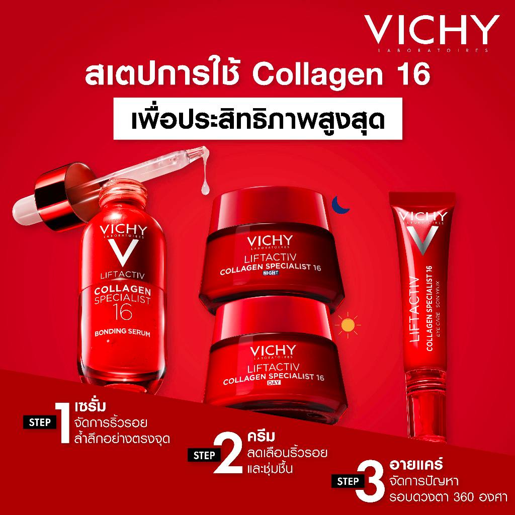 วิชี่ Vichy Liftactiv Collagen Specialist 16 Bonding Serum เซรั่มบำรุงผิวหน้า จัดการสัญญาณแห่งวัย 16 ประการ*