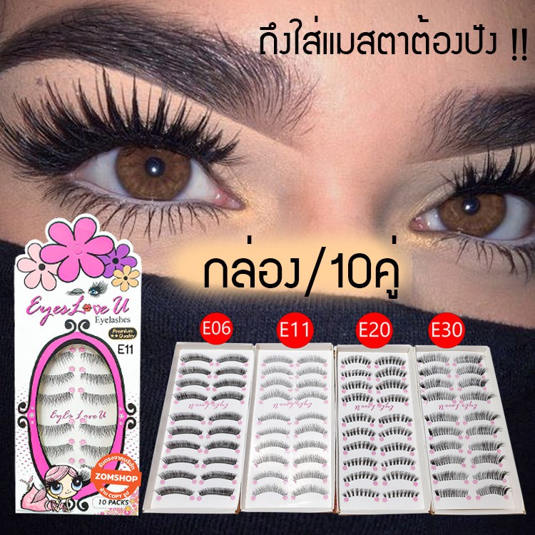 ของแท้ ⚡กล่องมี10คู่⚡ ขนตาปลอม แกนอ่อนนุ่มเบาสบาย ไม่เคืองและไม่หนักตา eyelashes แบรนด์ Eyes love u [รับตรงจากบริษัท]