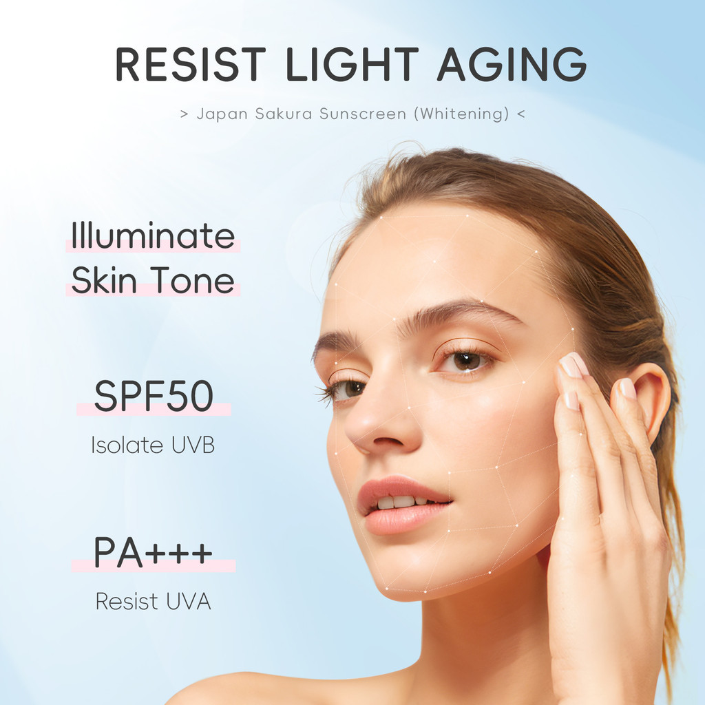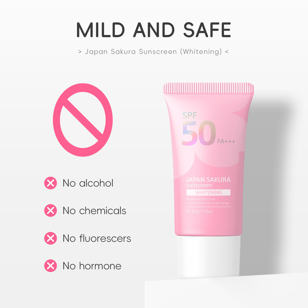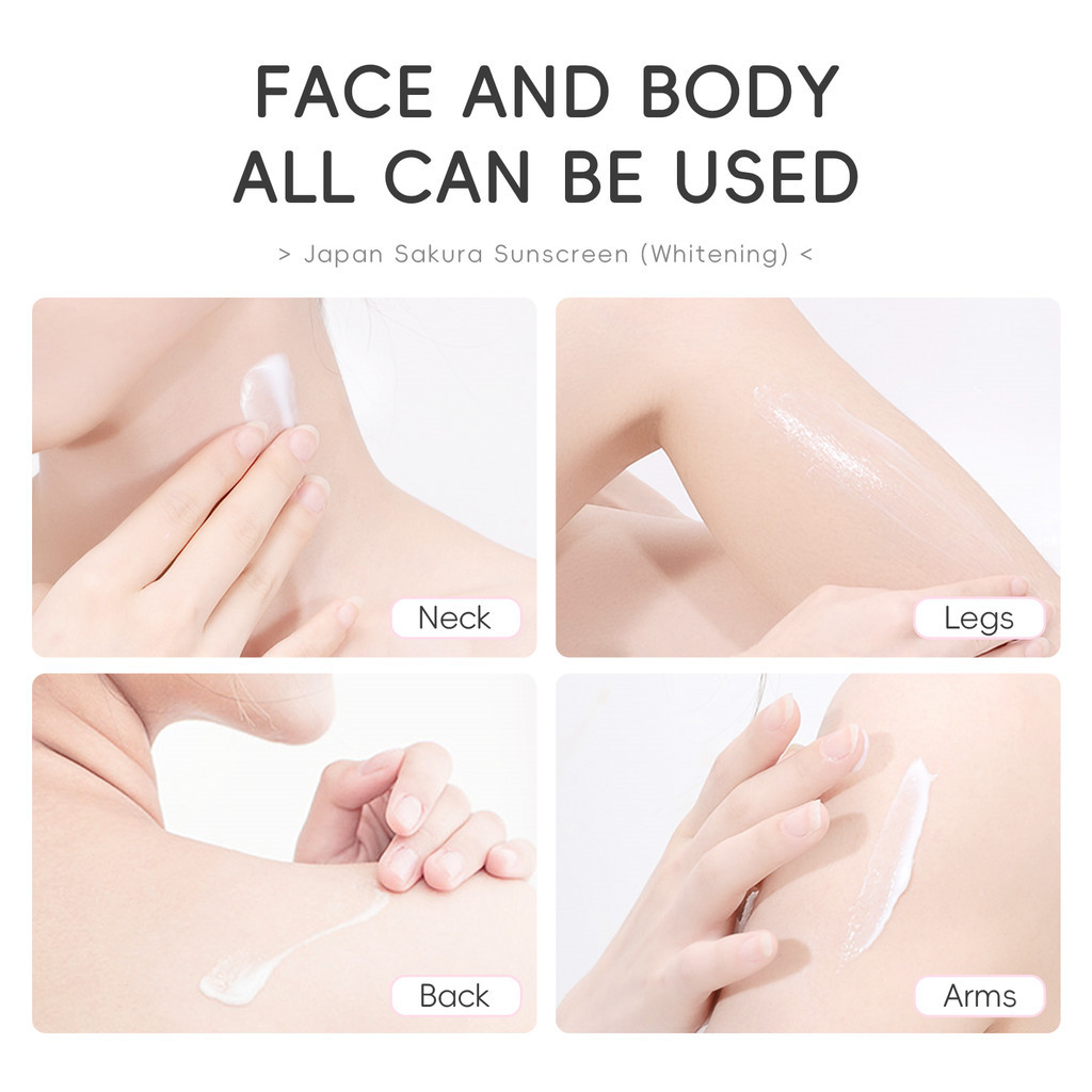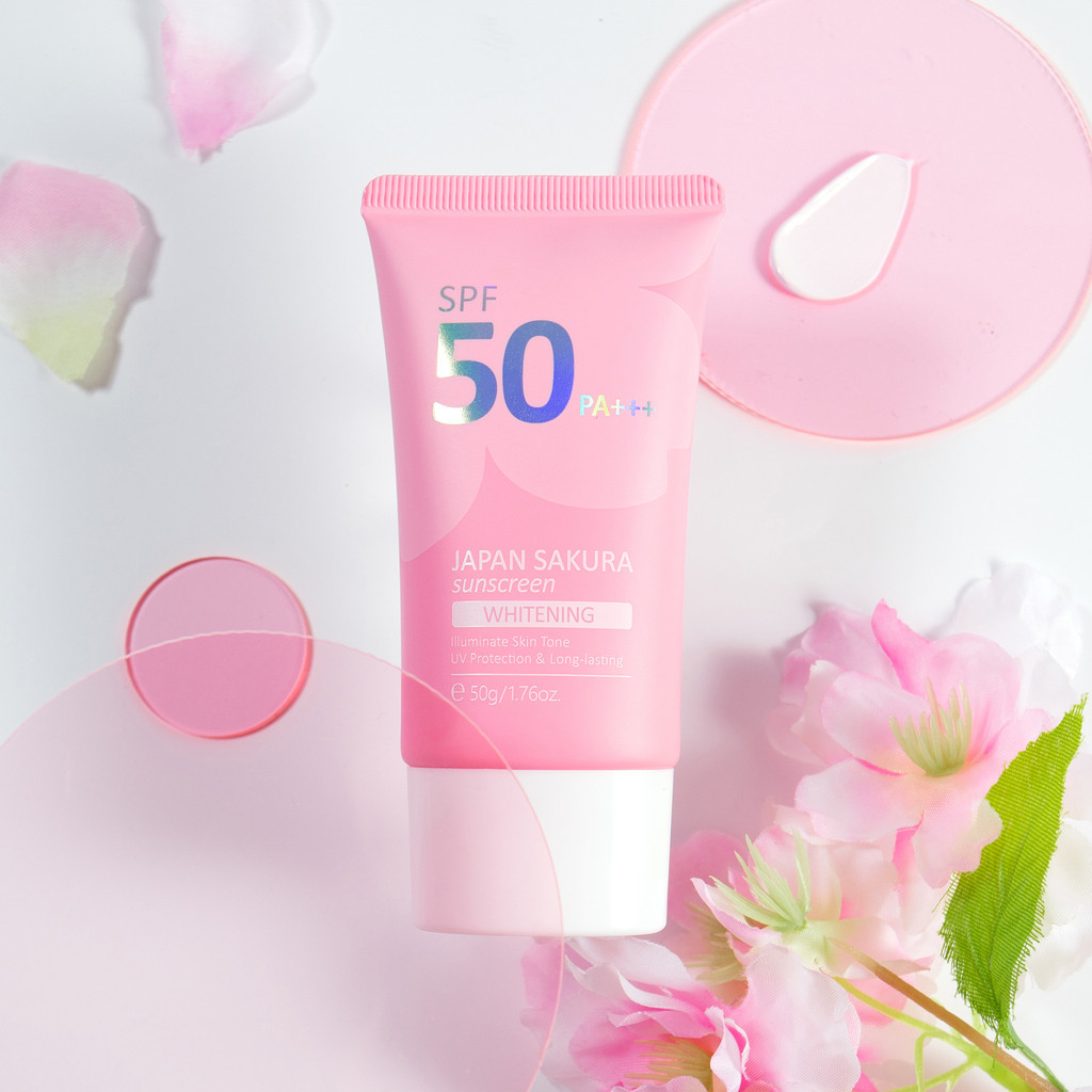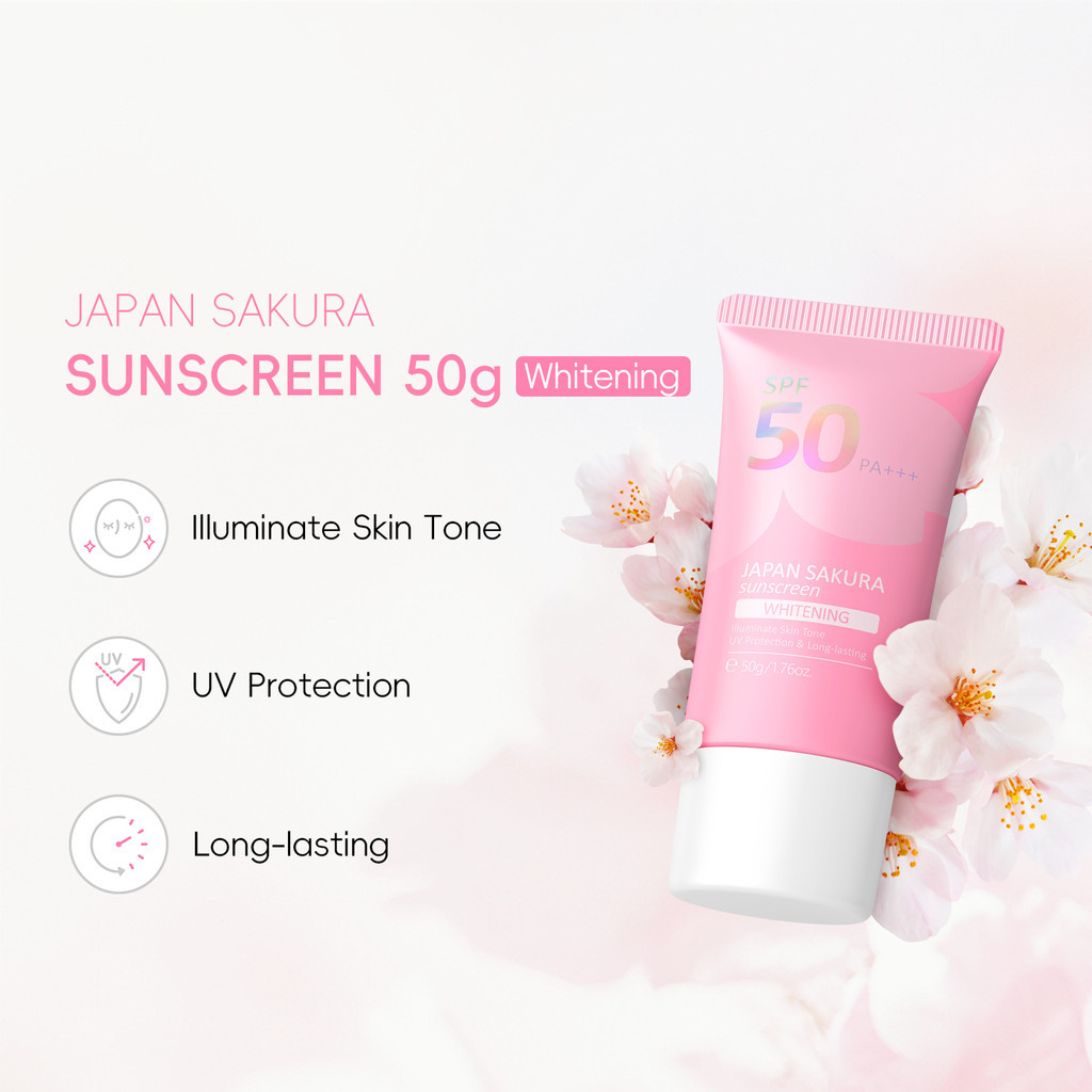 Laikou Japan Sakura Whitening Face Sunscreen UV Rays Protection Radiant Waterproof Body Sunblock SPF50 PA+++ 50g