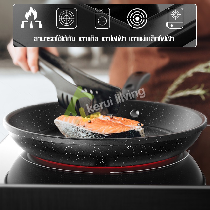 Cobbe กระทะก้นแบน กระทะทอดไข่ ใช้ผัด ทอด อาหารไม่ติดกระทะ เคลือบหินอ่อน ใช้ได้กับเตาแก๊ส เตาแม่เหล็กไฟฟ้า