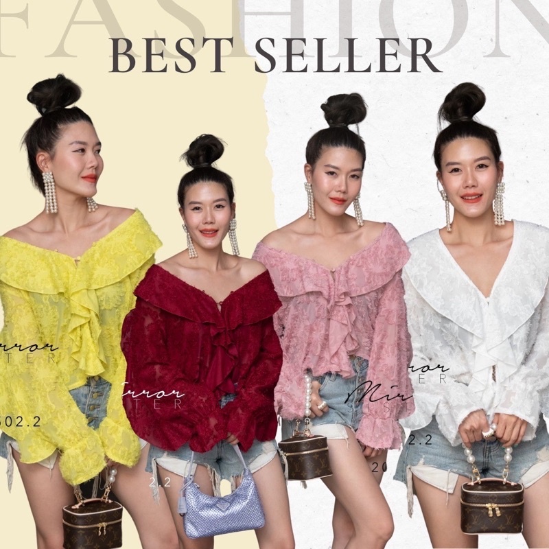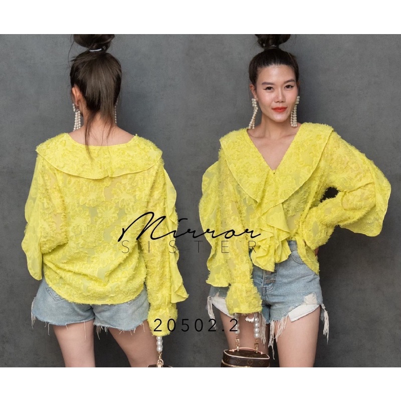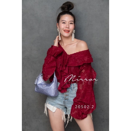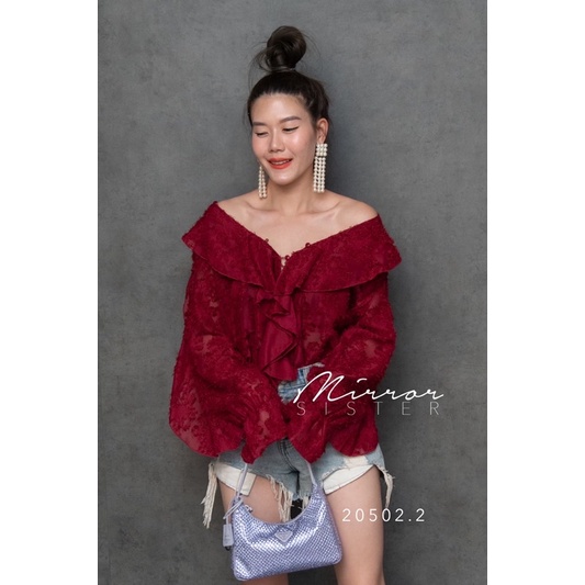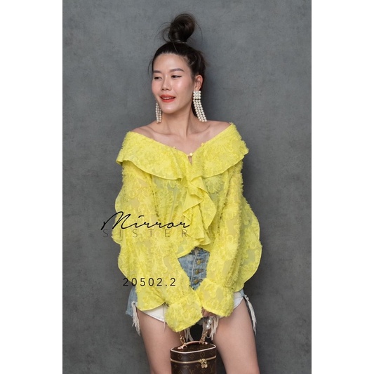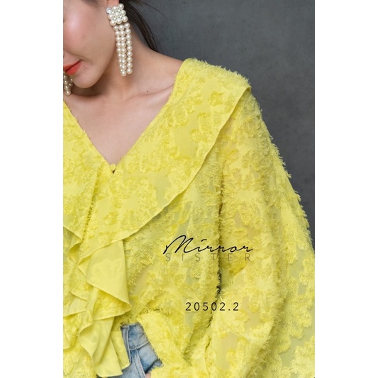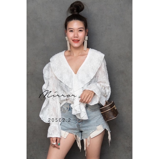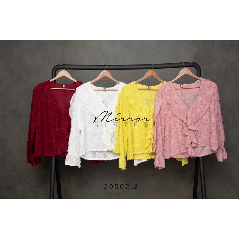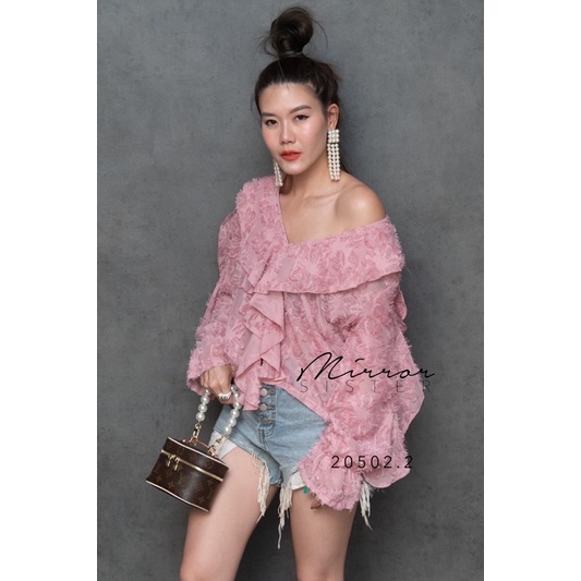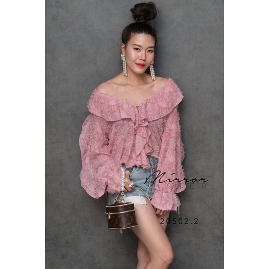 Code : 20502.2 เสื้อตัวเก๋ ผ้าลายดอกปุยๆ เสื้อไปงาน งานป้าย Mirrorsister