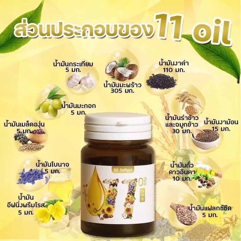 น้ำมันสกัดเย็น 11 ชนิด 11 Oil อาหารเสริมบำรุงสายตาและระบบประสาท ขนาด 30 เม็ด