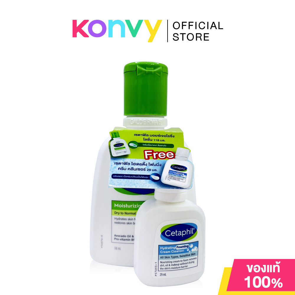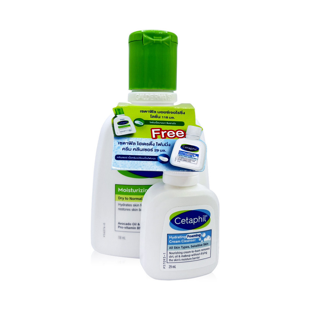 Cetaphil Moisturizing Lotion 118ml [Free! Cetaphil Hydrating Foaming Cream Cleanser 29ml] โลชั่นบำรุงผิวหน้าและผิวกา...