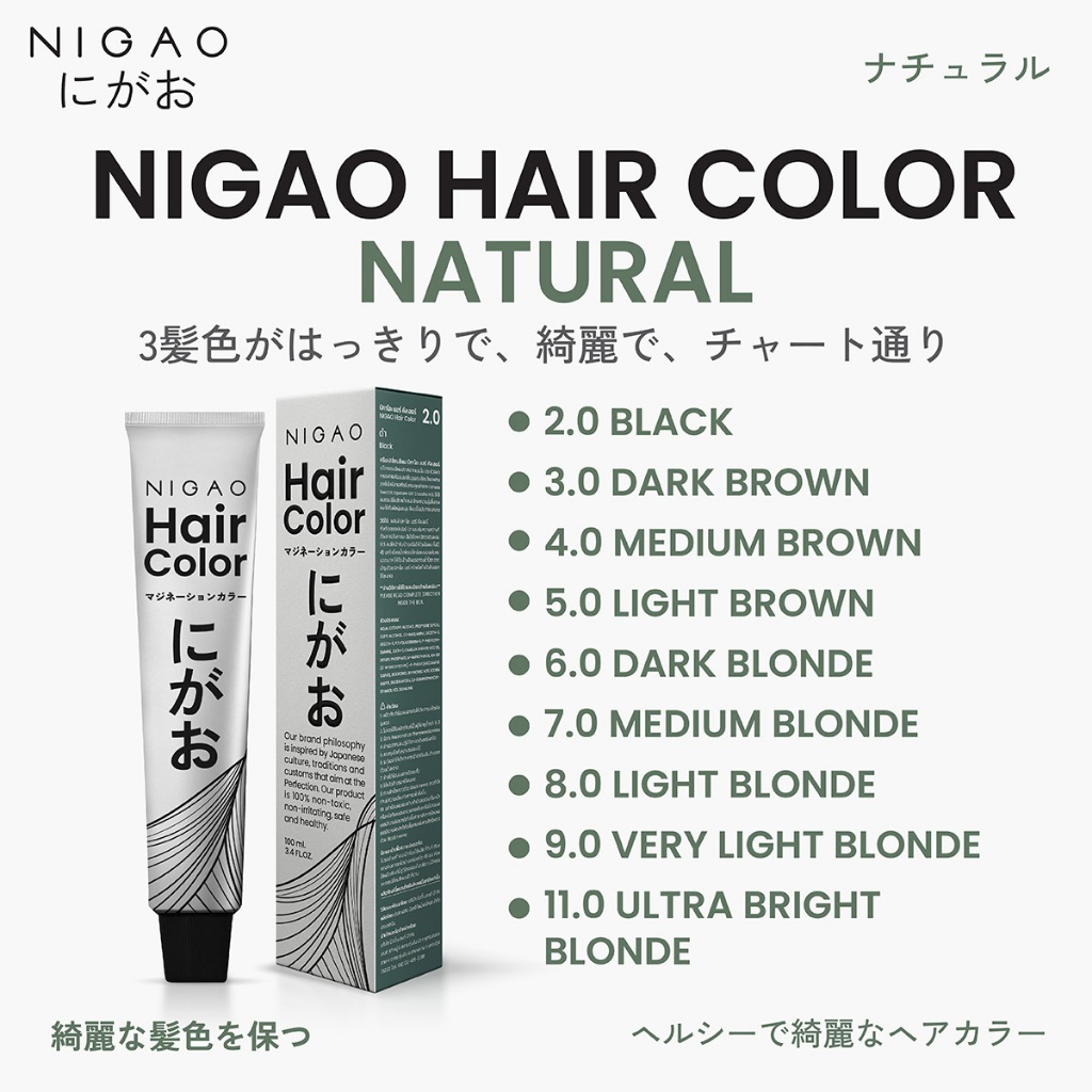 สีย้อมผม สีธรรมชาติ นิกาโอะ แฮร์ คัลเลอร์ ❗❗แถมไฮโดรเจน Nigao Hair Color 100 ml.
