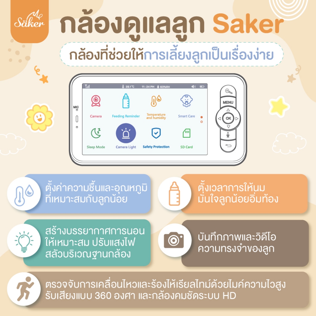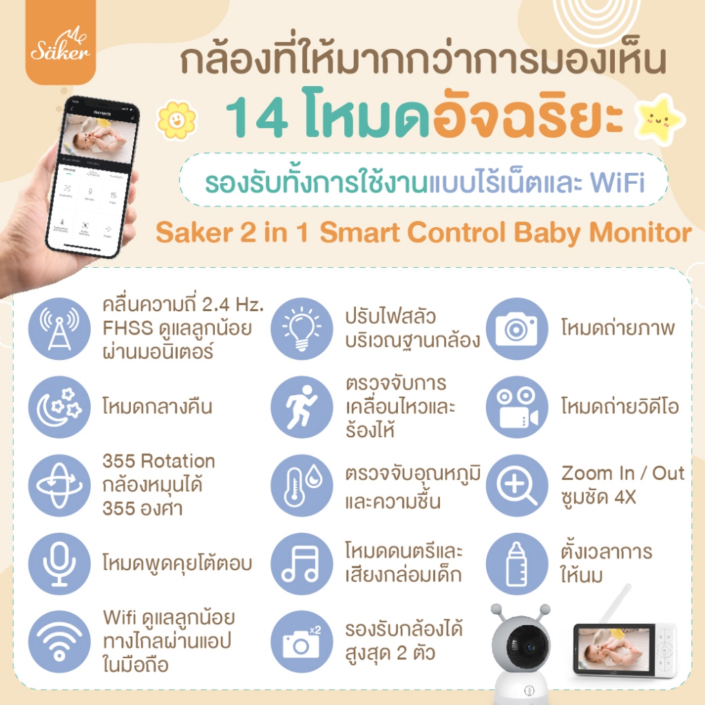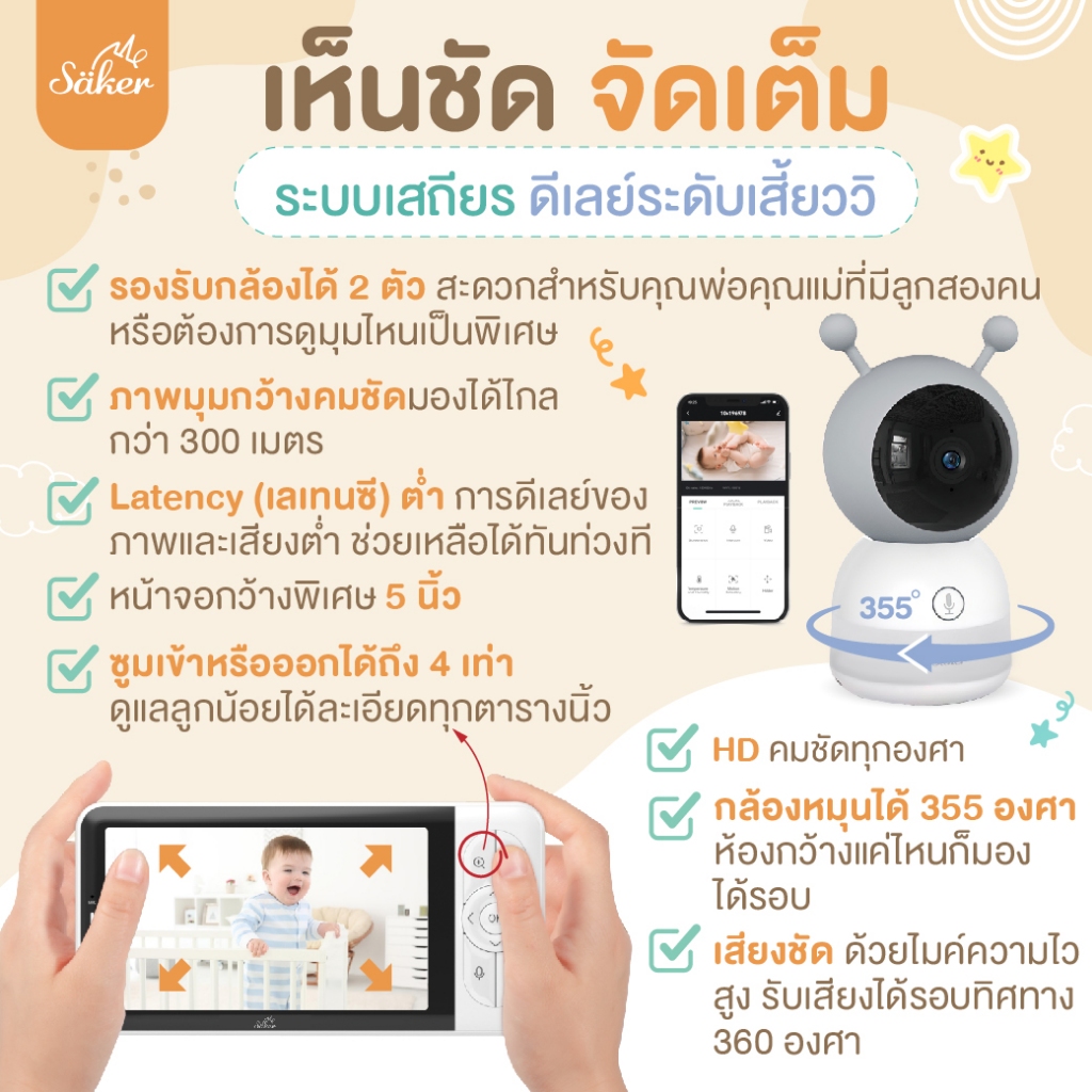 (คลื่นปลอดภัย)Saker BABY MONITOR กล้องดูแลลูกน้อย รุ่นใหม่! ไร้สาย ไม่ต้องใช้เน็ต 13 ฟีเจอร์สุดล้ำ