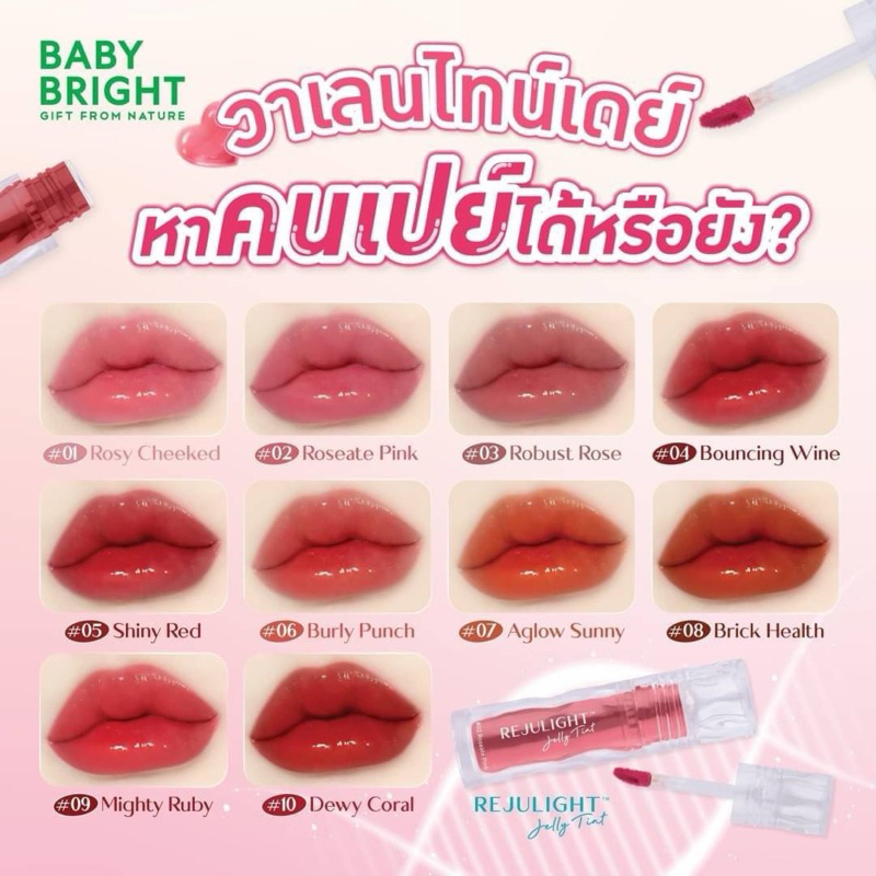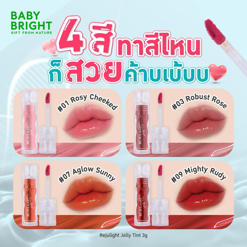 เบบี้ไบร์ท รีจูไลท์ เจลลี่ ทิ้น ลิปกระจก อิ่มฟู ฉ่ำวาว 3g Baby Bright REJULIGHT Jelly Tint