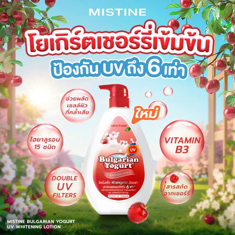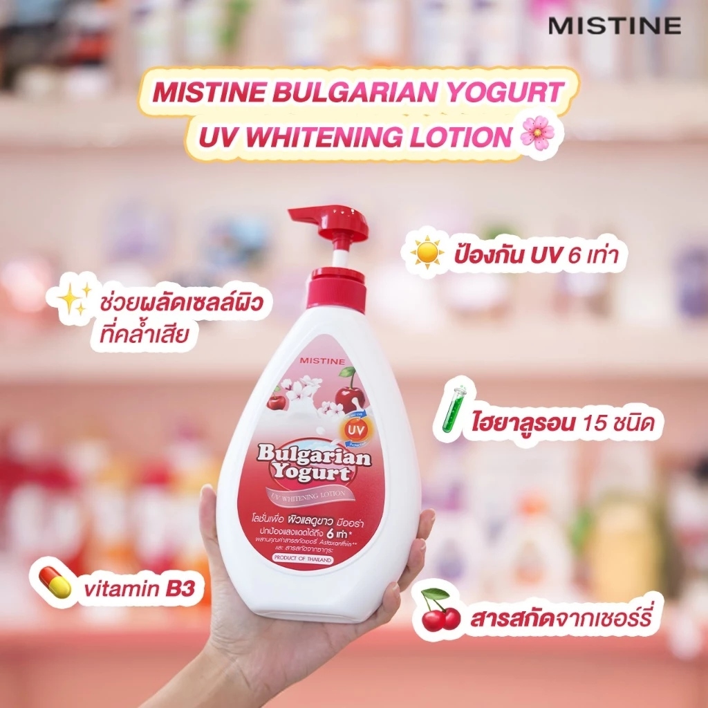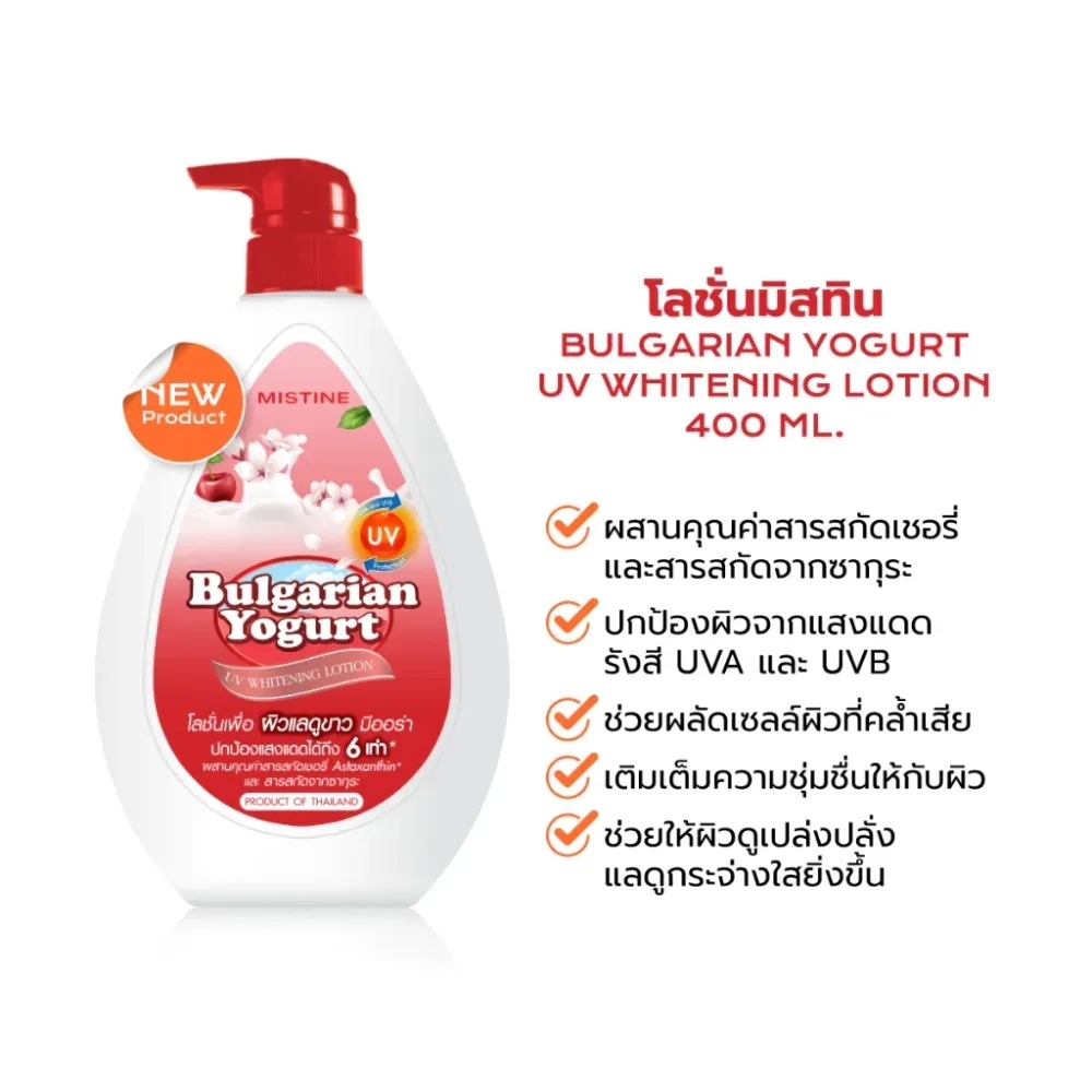 (1 ขวด) MISTINE BULGARIAN YOGURT UV WHITENING LOTION มิสทิน โลชั่นโยเกิร์ตเชอร์รี่(400 ml.)