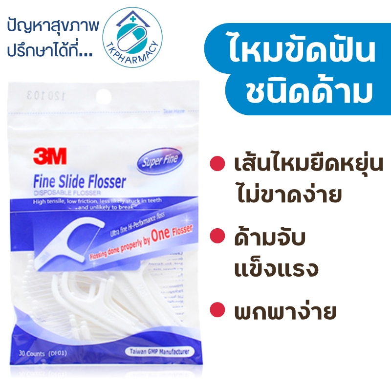 3M Nexcare Dental Fine Slide Flosser ไหมขัดฟัน / ไหมขัดฟันแบบมีด้าม 30 ชิ้น