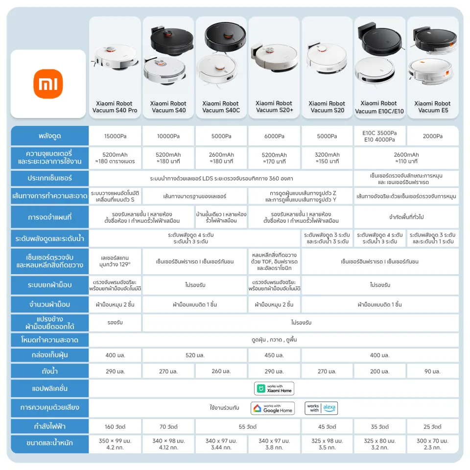 Xiaomi Robot Vacuum H40 / S40 / S40C หุ่นยนต์ดูดฝุ่น รับประกันศูนย์ไทย
