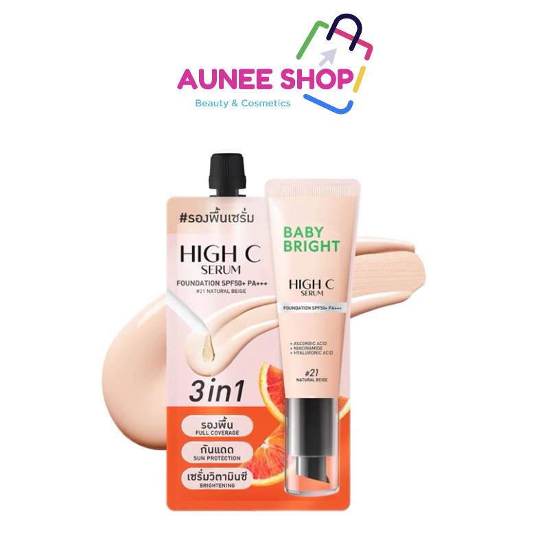 ส่งฟรี/มีไลฟ์ (ซอง)Baby Bright ไฮซีเซรั่มฟาวเดชั่น เอสพีเอฟ50+ พีเอ+++ 7g เบบี้ไบร์ท #21 Na