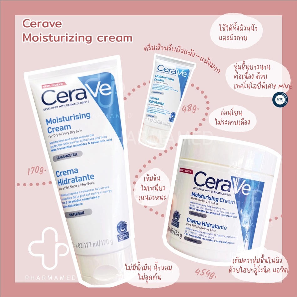 [ลดเหลือ🔥577.-] CERAVE Moisturising Cream เซราวี มอยเจอร์ไรเซอร์ ครีมบำรุงผิวหน้าและผิวกาย ขนาด 50ml / 177ml / 454ml