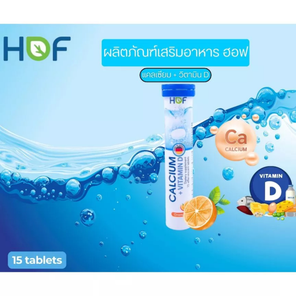 HOF Calcium Vitamin D ฮอฟ แคลเซียม + วิตามินดี เม็ดฟู่ เสริมแคลเซียม กระดูก 15 เม็ด