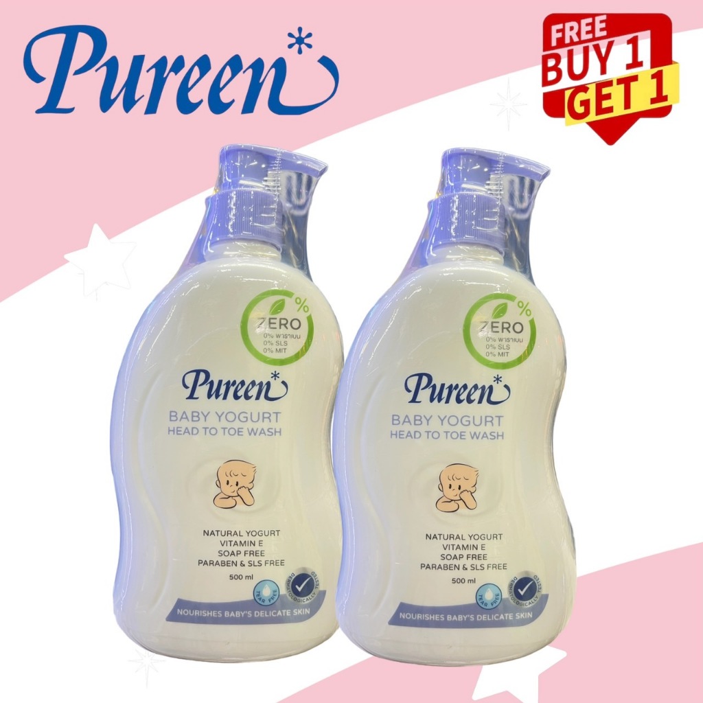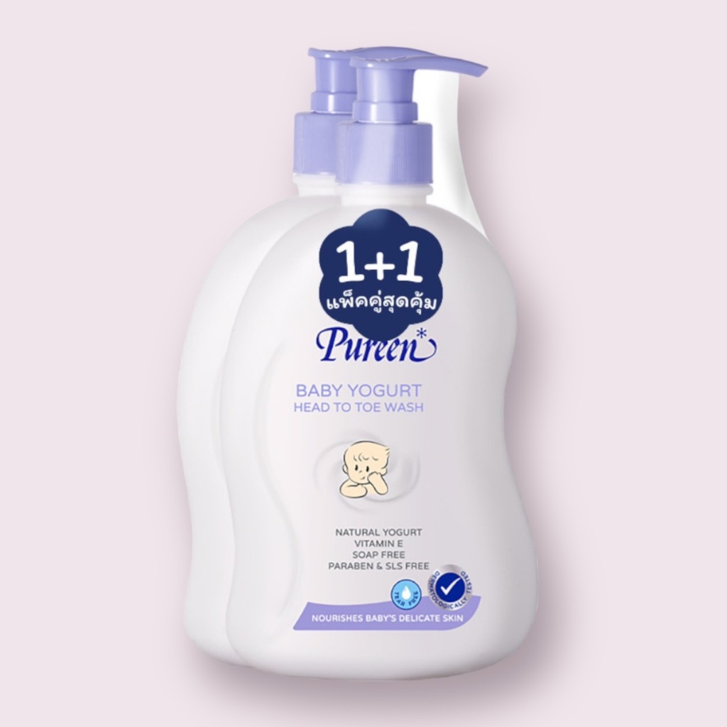 Pureen 1 แถม1 อาบสระเด็ก สูตรโยเกิร์ตขนาด 500 ml แถมฟรี หัวปั๊ม ขนาด 500ml