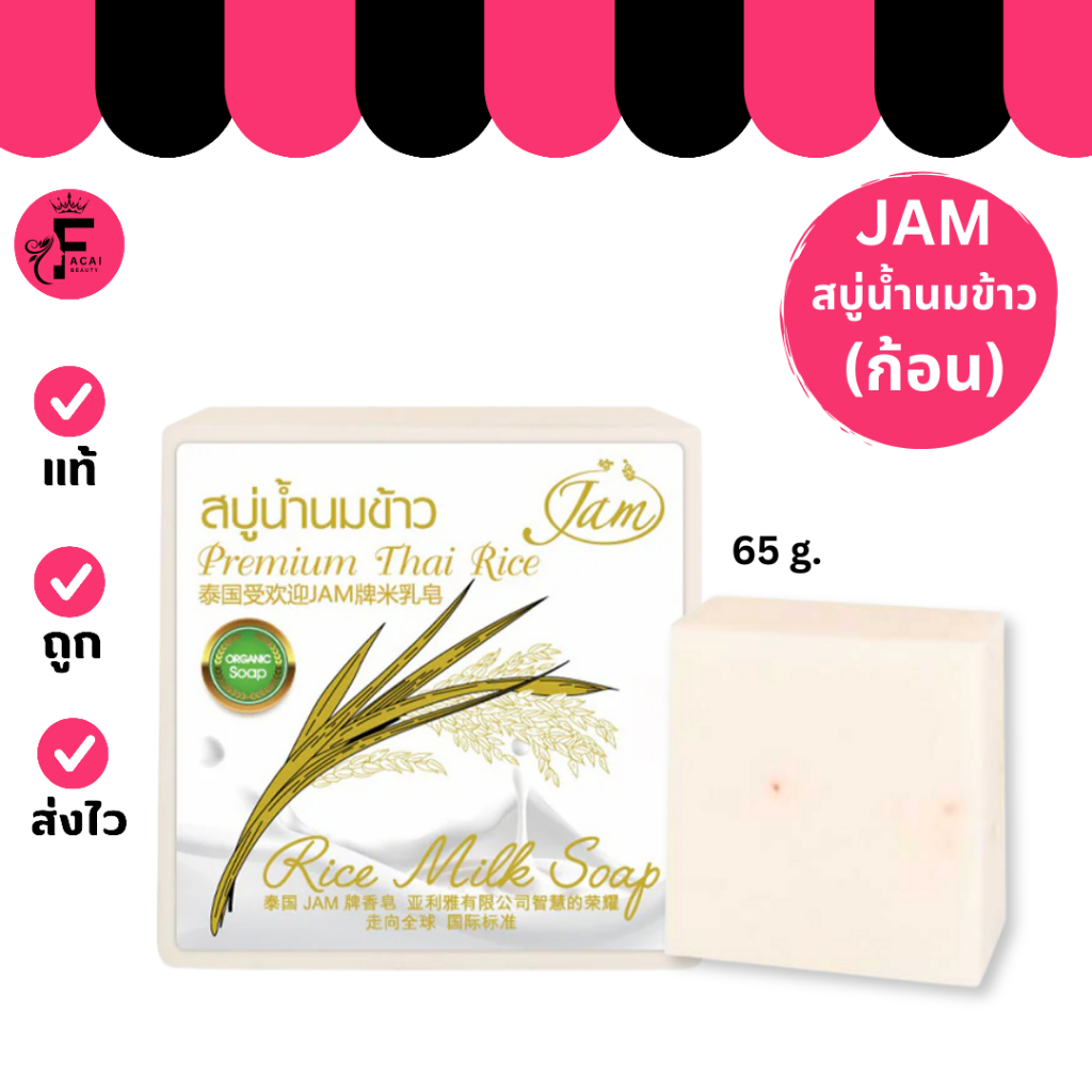 (ก้อน) Jam Rice Milk Soap แจม ไรซ์ มิลค์ โซพ สบู่น้ำนมข้าว (65 g.)