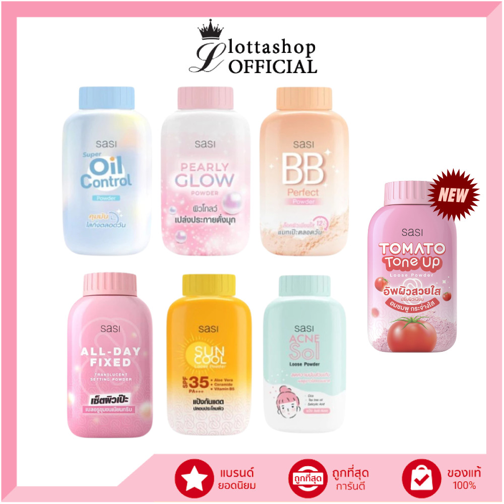 (แป้งฝุ่นกระป๋อง) Sasi ศศิ แป้งฝุ่น ( แอคเน่,โกลว์,บีบี,ออยล์คอนโทรล,ซันคูล ) 50กรัม
