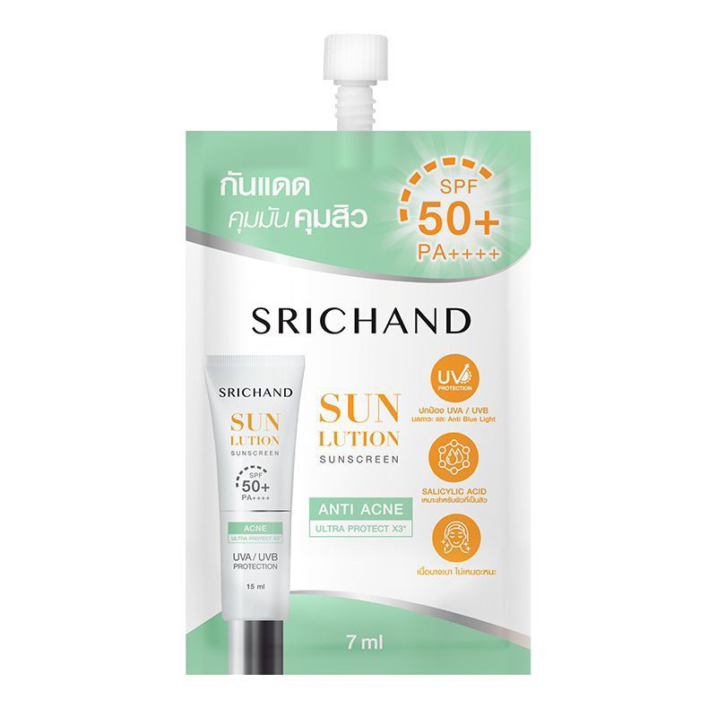 Srichand Sunlution Sunscreen ศรีจันทร์ ครีมกันแดด ซอง 7มล(ยกกล่อง)/หลอด15มล